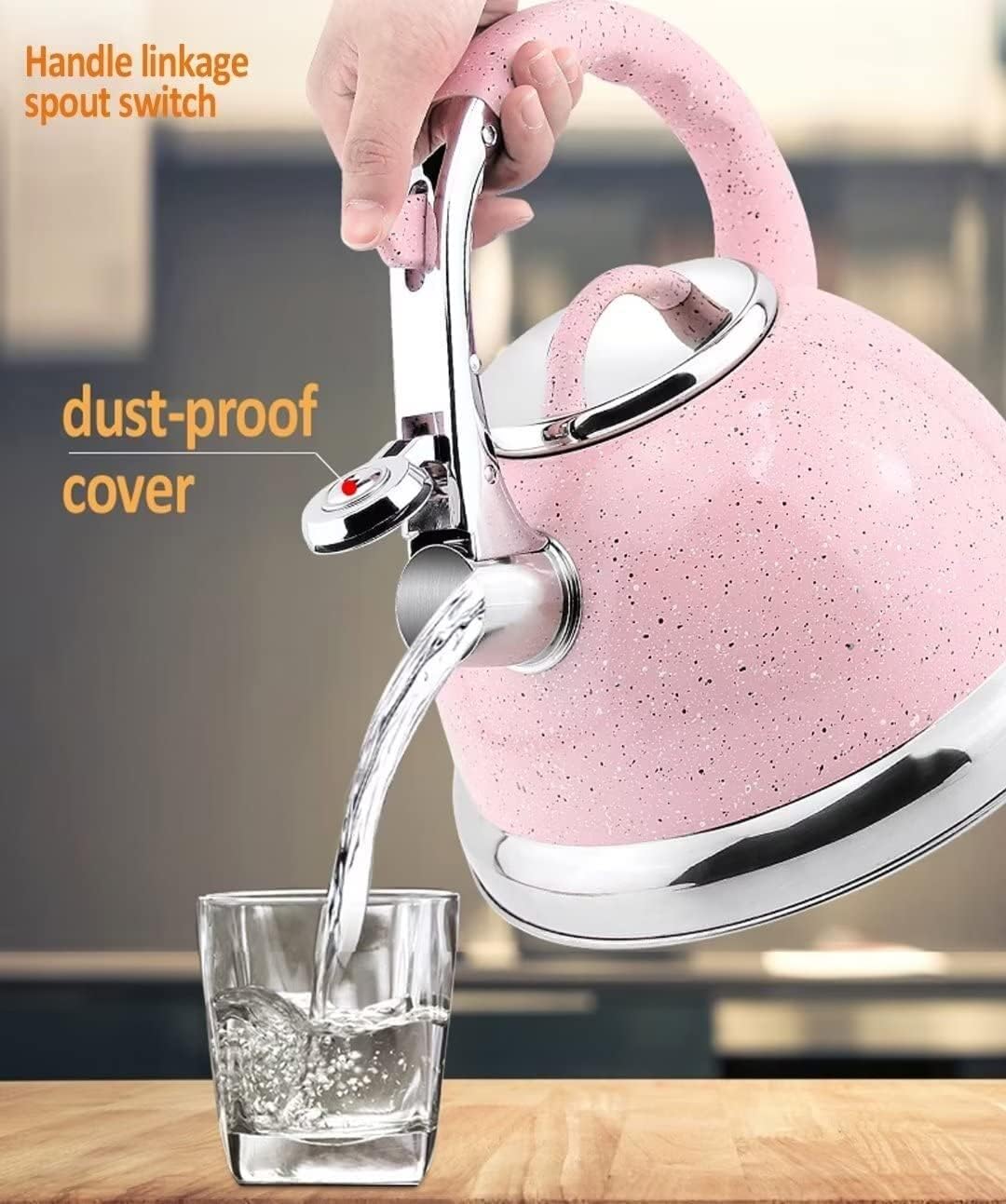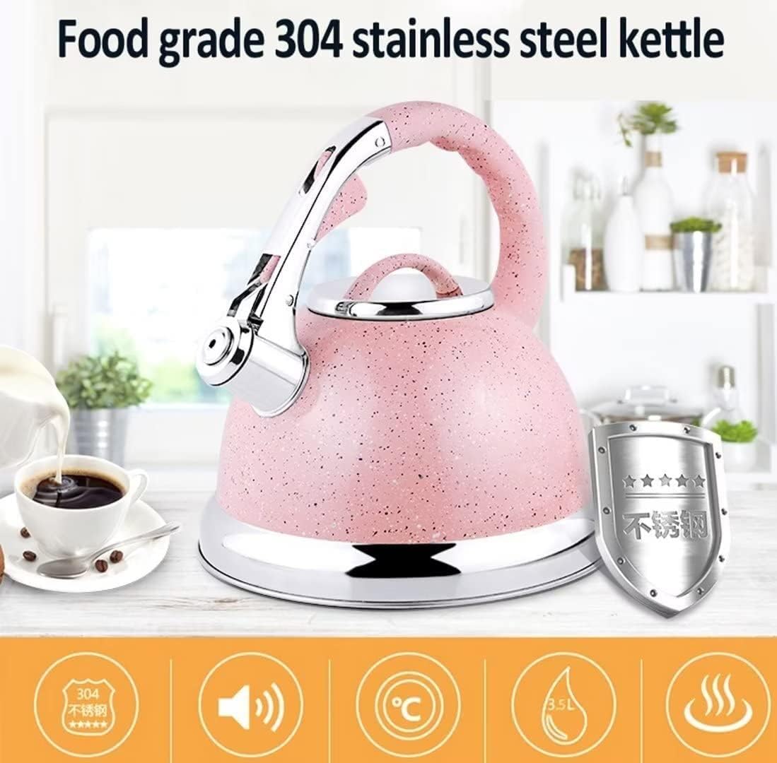 Classic look: Stovetop kettles for boiling water come in many looks, but nothing is as stylish as the classics. Features: 1. 304 stainless steel,food grade 2. Water that heats and boils quickly 3. Audible whistle 4. 3.5 liter capacity 5. Two ways for infusing water 6. Handle with spout cover linkage switch Specifications: Material: Stainless Steel+nylon Capacity: 3.5L Size: 3.5L--pot bottom diameter 22.5cm,opening mouth diameter 10cm,total height 22.5cm Use and Maintenance: 1.When boiling water, do not fill the water beyond the spout position. 2.Please use a low or medium fire for heating - prevent the flame from burning the spout or discoloring the body. 3.After use, please rinse and dry the tea kettle, and place it in a dry and ventilated place. Matters Need Attention : A High Fire can overheat it and make it impossible to touch directly, and even cause the paint to peel off. To protect the kettle, it is recommended to use low to medium heat when boiling water to ensure a longer lifespan.