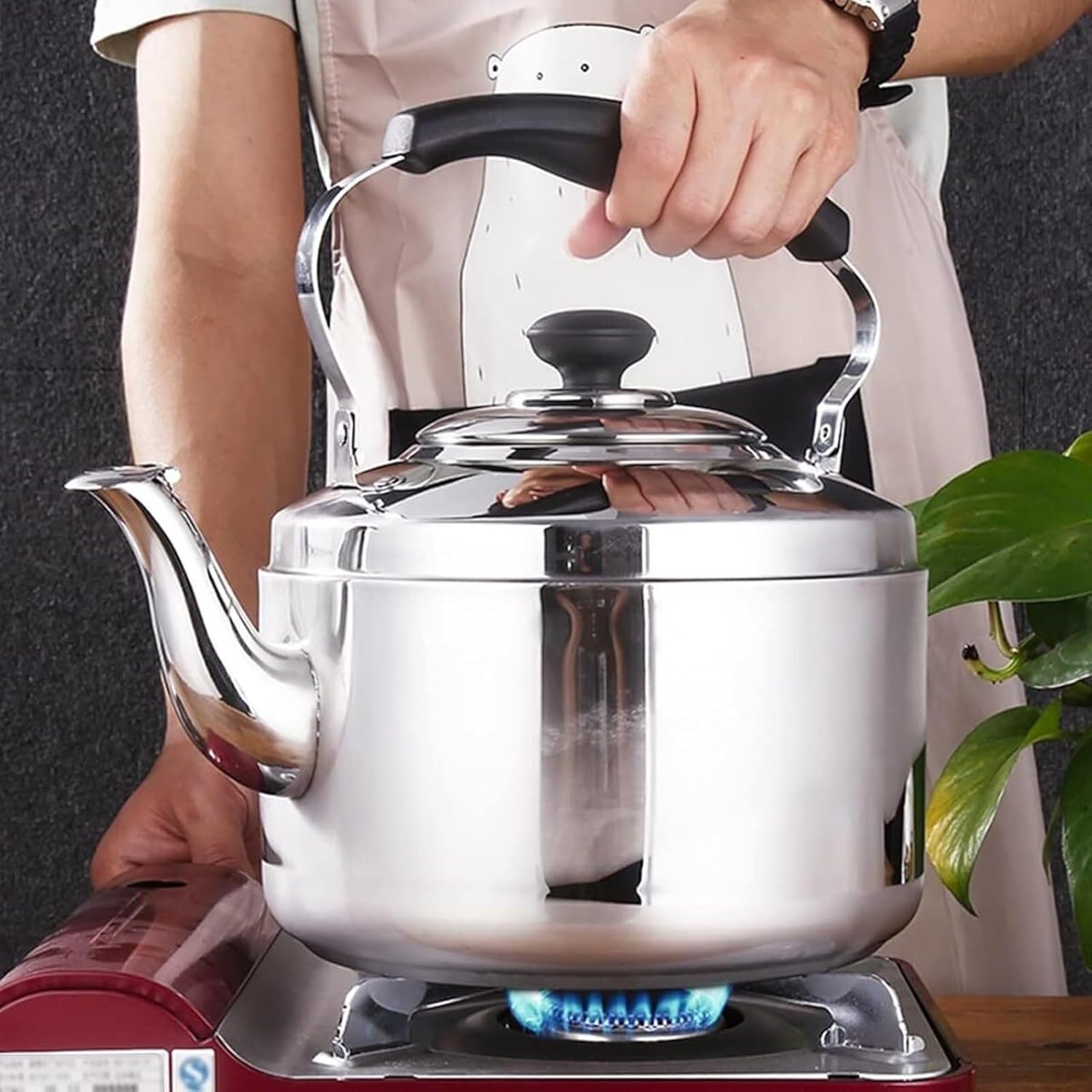 Parameters: Material: 304 stainless steel Capacity:4/5/6LNote:The water level of the teapot is the highest. Do not j add water to fill it up, otherwise the flute will not make a sound and the water will splash out at the same time.The amount of water should not be too small to avoid dry firing.Avoid too much heat to boil water, which will affect the service life of the bottom of the pot.Don't dry boil the kettlePay attention to anti-scalding and prevent children from touching it.When cleaning the kettle, pour it into food-grade citric acid and soak it for 5-10 minutes.All decorations in the picture are not included in our product range.