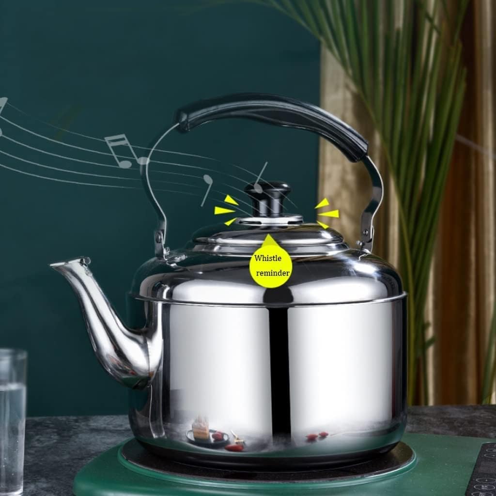 Great for the whole family or party: It can quickly and efficiently boil more hot water, saving time and no need to frequently re-boil water. This stovetop kettle is lightweight, easy to use and carry, and is a friendly teapot!Product Name: Teakettle / Whistle Kettle /Tea Kettle / Kettle /Teapot /Tea PotsMaterial: 304 stainless steelCapacity: 4-8LStyle: ChineseStove: induction cooker, gas cooker, electric ceramic cooker, halogen cooker, electric cookerColor classification: 4L/135.2OZ; 5L/169OZApplication: Home/BusinessProduct size: 4L: 20x14.5cm/7.8x5.7"; 5L/: 22x16cm/8.6x6.2"Weight: 700 gramsBe careful when using on an open flame. Please use this teapot on medium-low heat. It heats up very fast and saves energy. After using the kettle, you may find that the kettle does not rust, but scales! ! ! Don't worry, you can add vinegar, lemon juice or a descaling agent to your boiling kettle to effectively remove limescale on a regular basis.Notice:Please allow 0.5-1 inch difference due to manual measurement.Due to the difference between different monitors, the picture may not reflect the actual color of the product, please refer to the actual product! Thank you for your understanding!Welcome to our store, if you have any questions, please feel free to contact us, we will reply your message within 24 hours. I wish you a happy life!