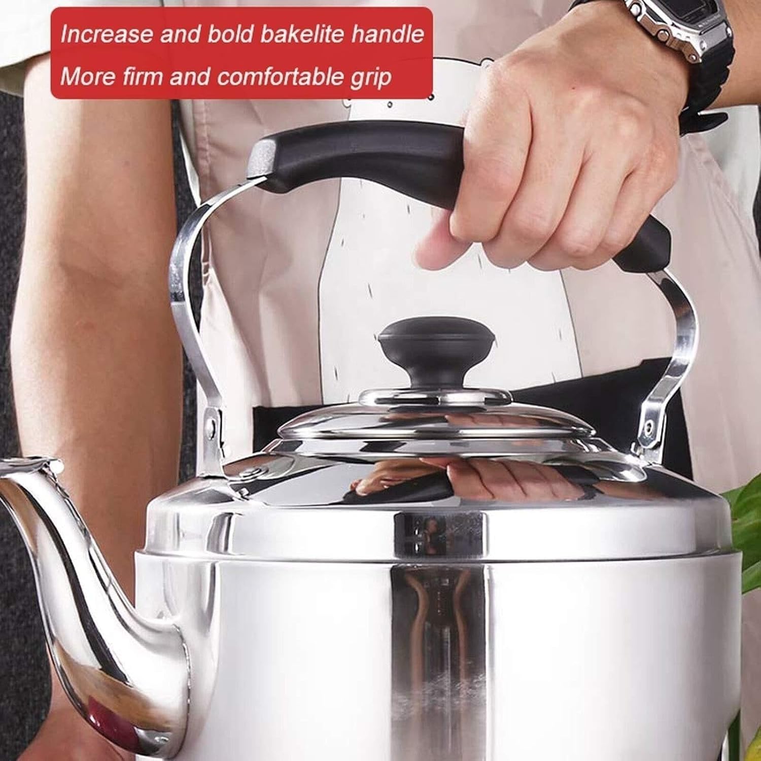 a Pleasant,Ble Whistle Noise Swiftly Alerts You When the Water Has Reached Full Boil. the Bakelite Material of the Pot Lid and Handle Can Effectively Insulate and Prevent Burns Question:Does the Handle Fold Down? Answer:Yes the Handle Folds down Both Ways. : Texture: Culinary Grade Capacity: 4-6 Liters Color: Mirror Polished Silver