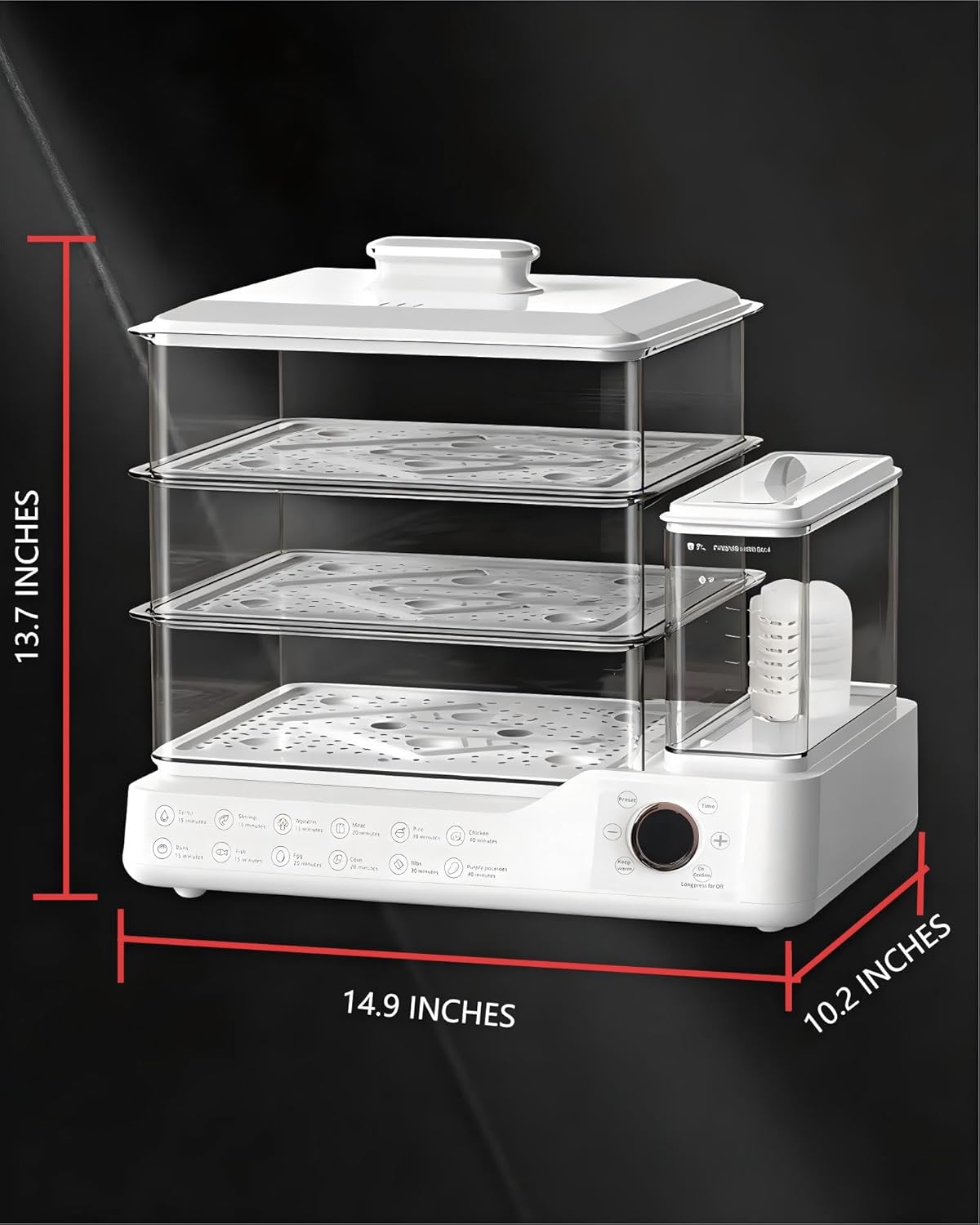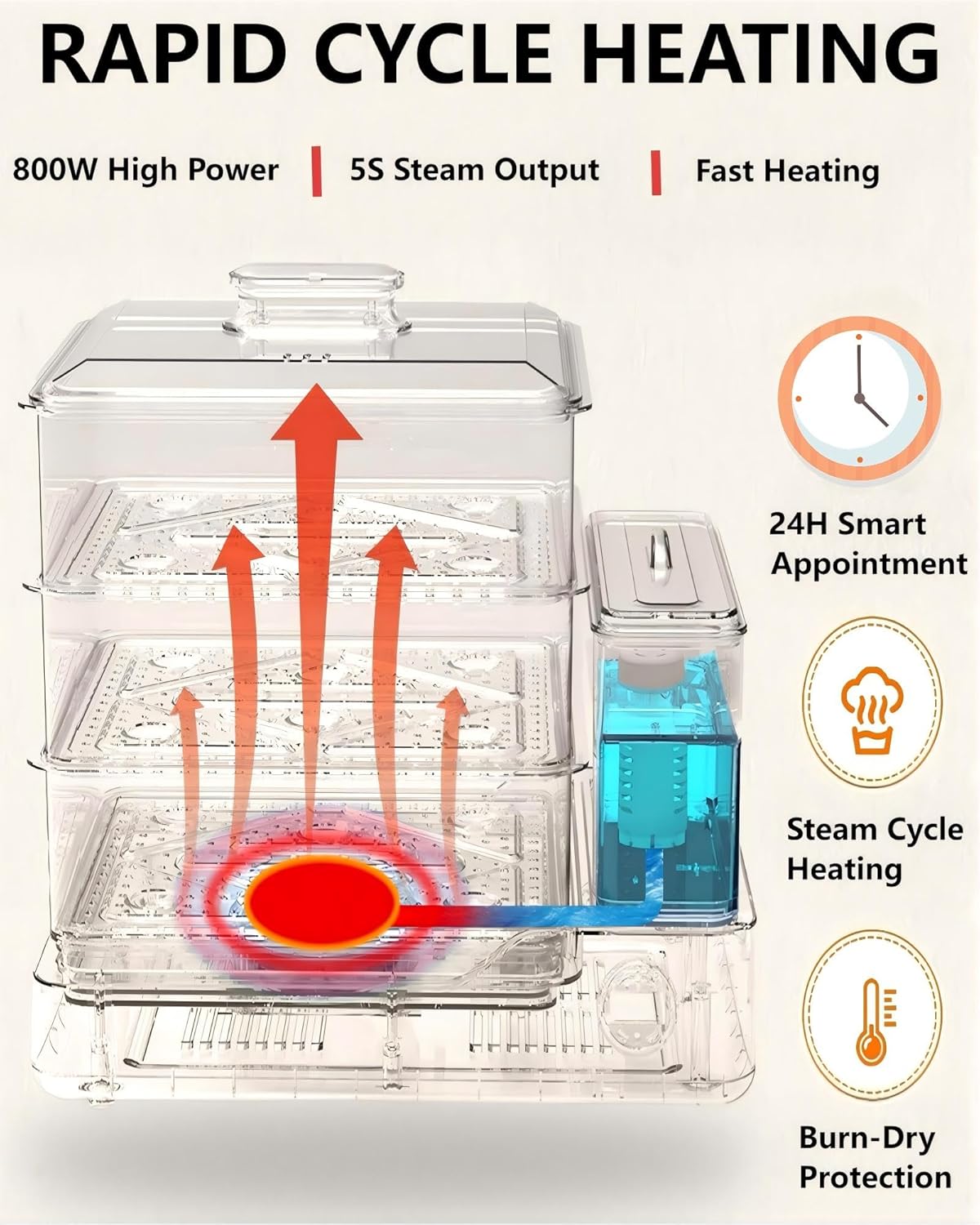 | Included Components | 1 anti scald clip, 1 cleaning brush, 3 steamer pads, host |