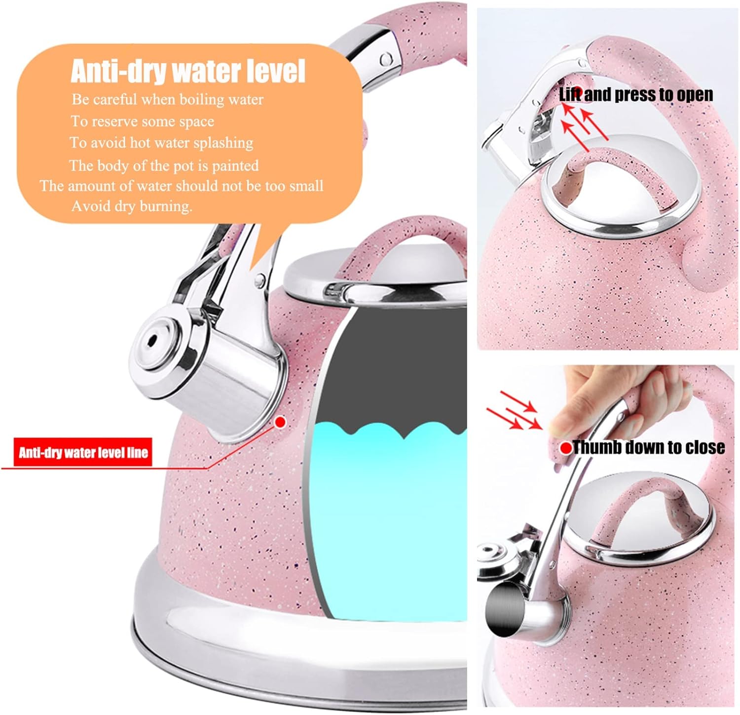 Tea kettle with stylish and simple design. No matter it is used or placed, it will be a beautiful scenery to decorate your kitchen. Anti-Rust High-quality food-grade stainless steel, Safe and . Heat-resistant handle and a simple touch-lid open button, a unique and loud whistle will attract your attention, ensuring your safety. tea kettle, the combination of safety, practicality and beauty, is the for your home use. Product name: Stainless steel whistle kettle Applicable stoves: electric stove, induction stove, gas stove capacity: 3.5L Weight: 930g stainless steel anti-rust Unique and loud whistle attract your attention Simple touch button to open the lid Heat-resistant and comfortable handle Stylish and simple design 3.5L large capacity ◆Notes: The teapot has the highest water level. Do not add water when adding water, otherwise the flute will not make a sound and water will splash out at the same . The pot body adopts baking varnish process, and the amount of water should not be too small to avoid dry burning. When cleaning the kettle, pour it into food grade citric acid and soak for 5-10 minutes. Baking soda cleaning method: Baking soda can be used in baking soda in the kitchen. When boiling water, put a teaspoon of baking soda, boil it for a few minutes, remove scale, and rinse with water. All the decorative items in the picture are out of our product range. Manual measurement of product size usually results in a small error of 1-3 cm. Due to the difference between the monitor and the shooting, it may also be the color difference between the picture and the actual object.