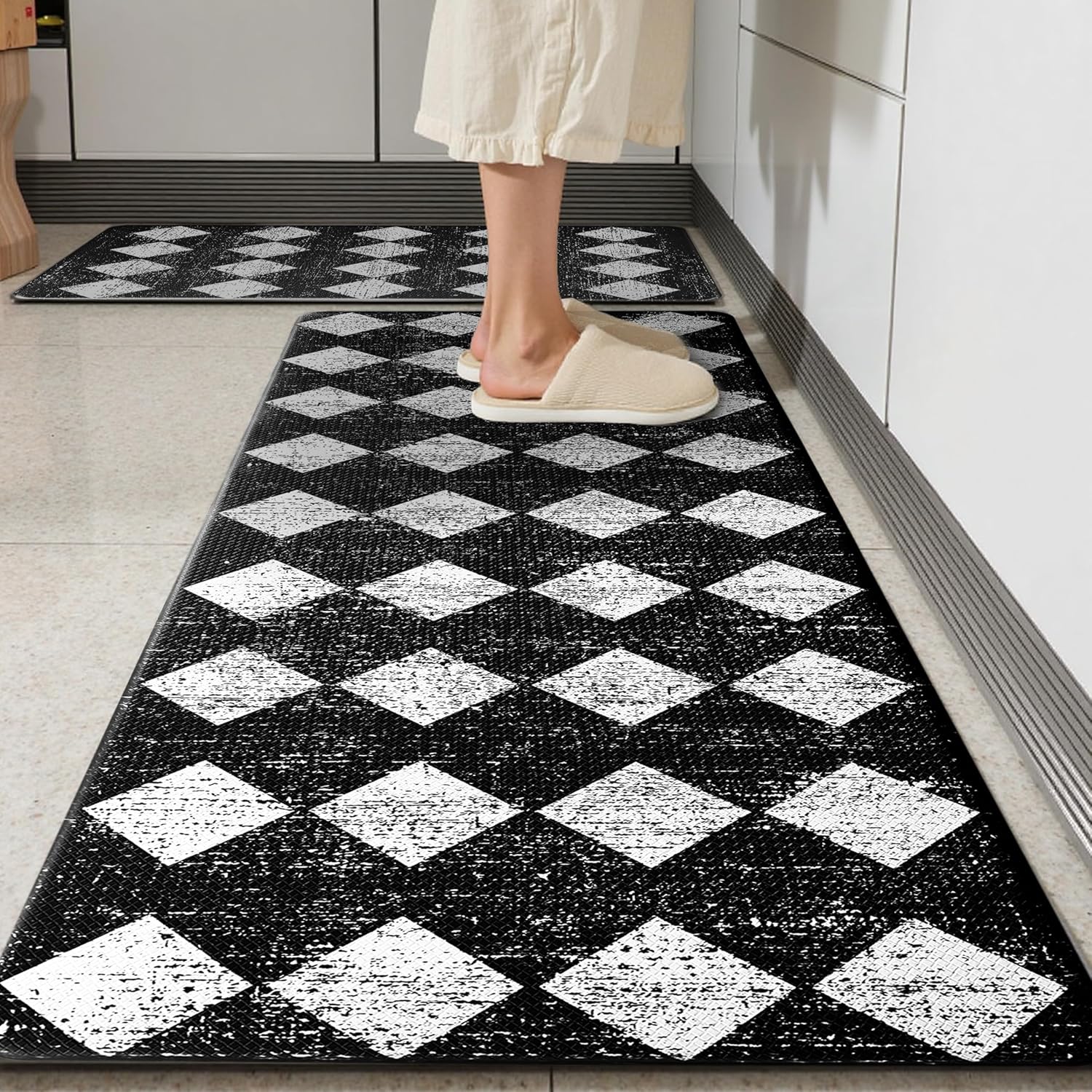 VivaNest Retro Curvy Rounded Checkerboard Plaid Kitchen Rugs