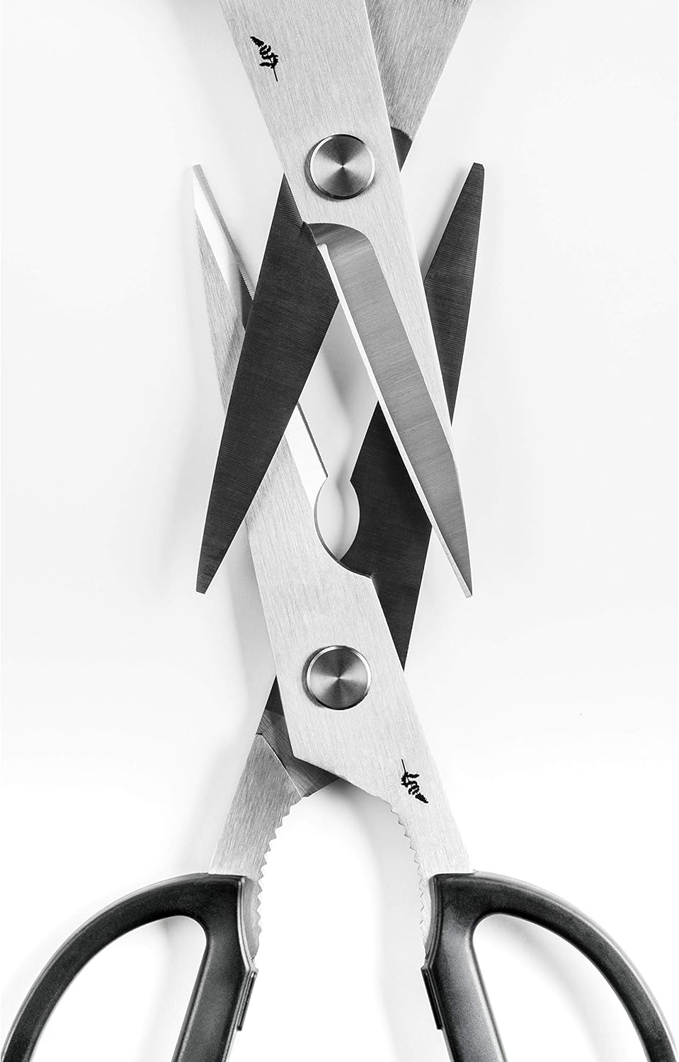 The Michel BRAS No. 2 Kitchen Shears are a versatile kitchen tool perfect for everyday use. With built-in features, including a nutcracker and poultry bone notch, these heavy duty shears are built to take on a variety of kitchen tasks. Featuring stainless steel blades and a micro-serrated edge, these sturdy kitchen shears deliver exceptional durability and sharpness. The handles offer excellent grip and comfort, while the blades come apart for easy cleaning. Supported by free honing. Established in Seki City, Kai brings Japan’s rich knife-making heritage to life through the Michel BRAS No. 2 Kitchen Shears, a true commitment to creating beautiful, quality cutlery.