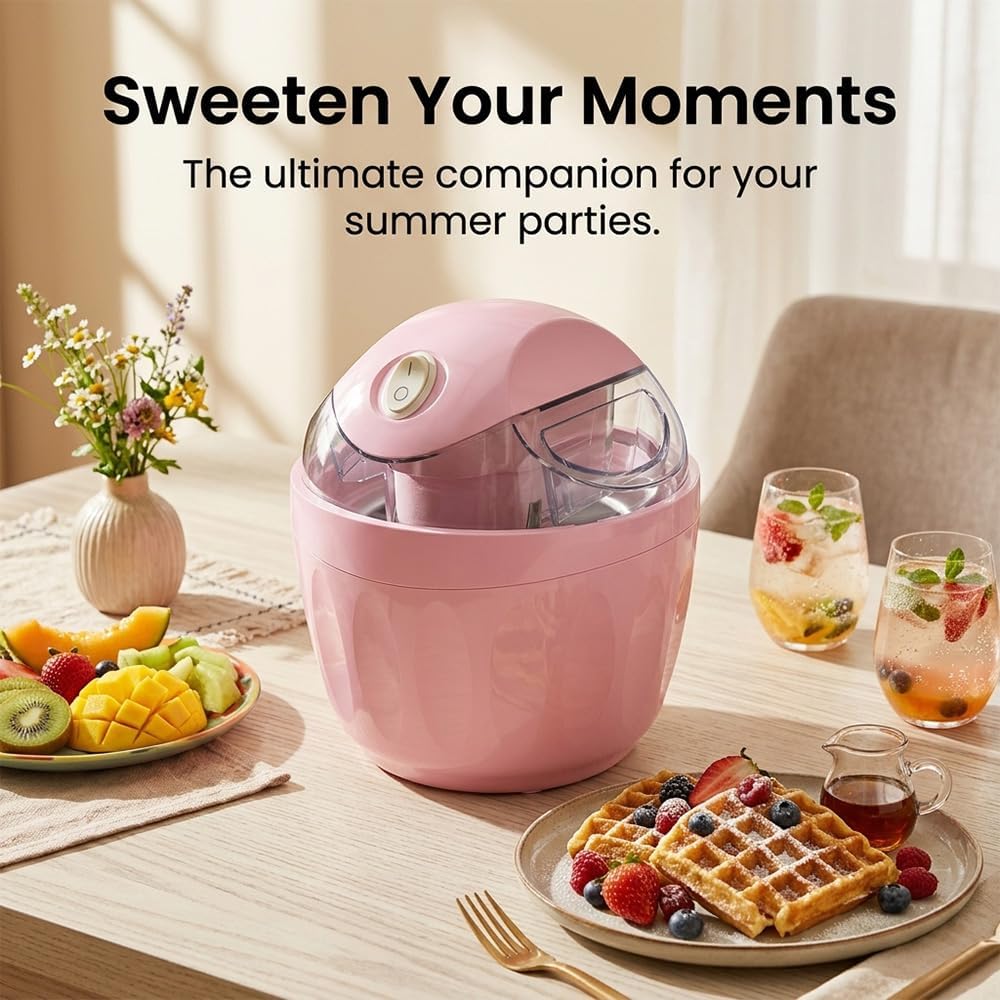 Bring homemade dessert moments into your daily routine with this mini ice cream maker. Designed for home use, it offers a compact and approachable way to make ice cream, sorbet, and frozen-yogurt-style treats without relying on a large appliance. For users who want a practical ice cream machine for quick, enjoyable dessert making, this small-format design fits naturally into modern kitchens and everyday life.At the basic level of use, convenience matters. The product images show quick frozen dessert preparation in as little as 15 minutes, helping reduce the wait between craving and serving. For busy households, casual dessert lovers, or anyone who prefers simple routines, that means less friction and an easier path to homemade treats.A sense of comfort also comes from ease of use. With one-touch operation and a transparent lid, the process feels easier to understand and easier to follow. Instead of guessing what is happening inside, users can visually track the mixing process, which adds reassurance for first-time users and makes the experience more approachable for family settings.Beyond convenience, this personal ice cream maker mini supports more personalized enjoyment. Homemade dessert making can feel more social, more creative, and more connected to everyday moments, whether you are preparing a small treat for yourself, serving dessert after dinner, or sharing something fun with family. That sense of participation and presentation adds value beyond the dessert itself.For users who care about space, style, and simple routines, this mini ice cream maker machine is suited to apartments, smaller kitchens, and countertop use where compact appliances make daily living easier. It is a fitting choice for home dessert lovers looking for a small icecream maker machine that supports convenience, enjoyable presentation, and everyday DIY dessert moments.