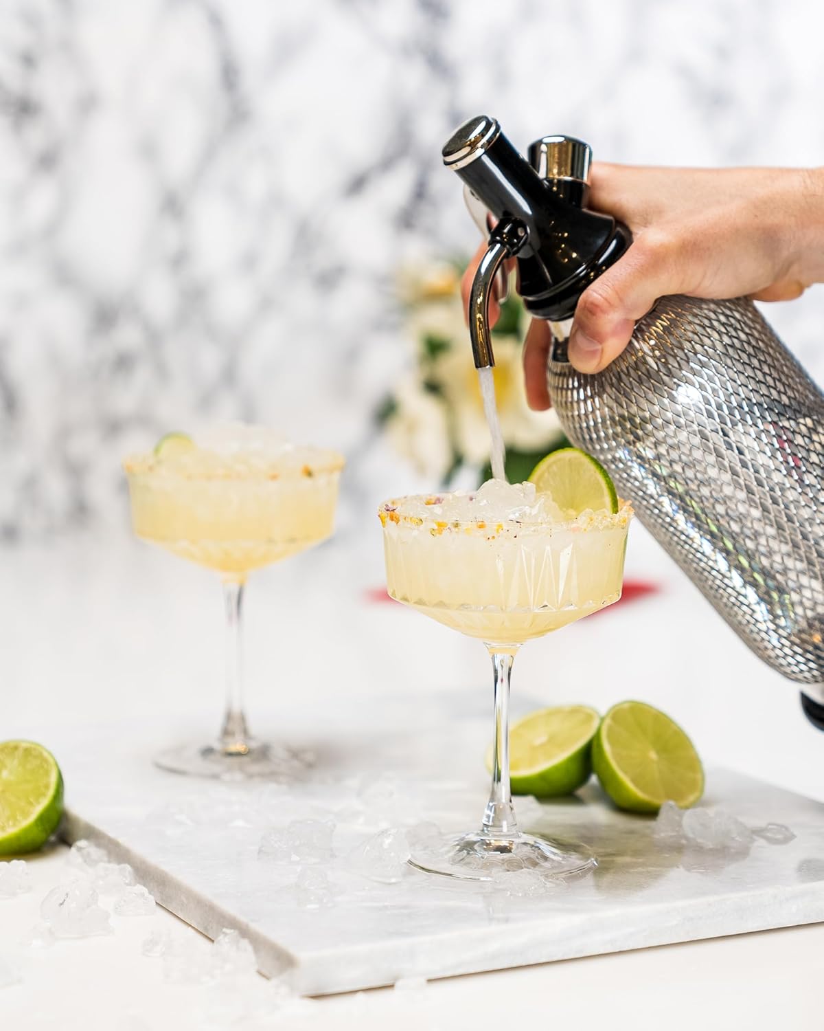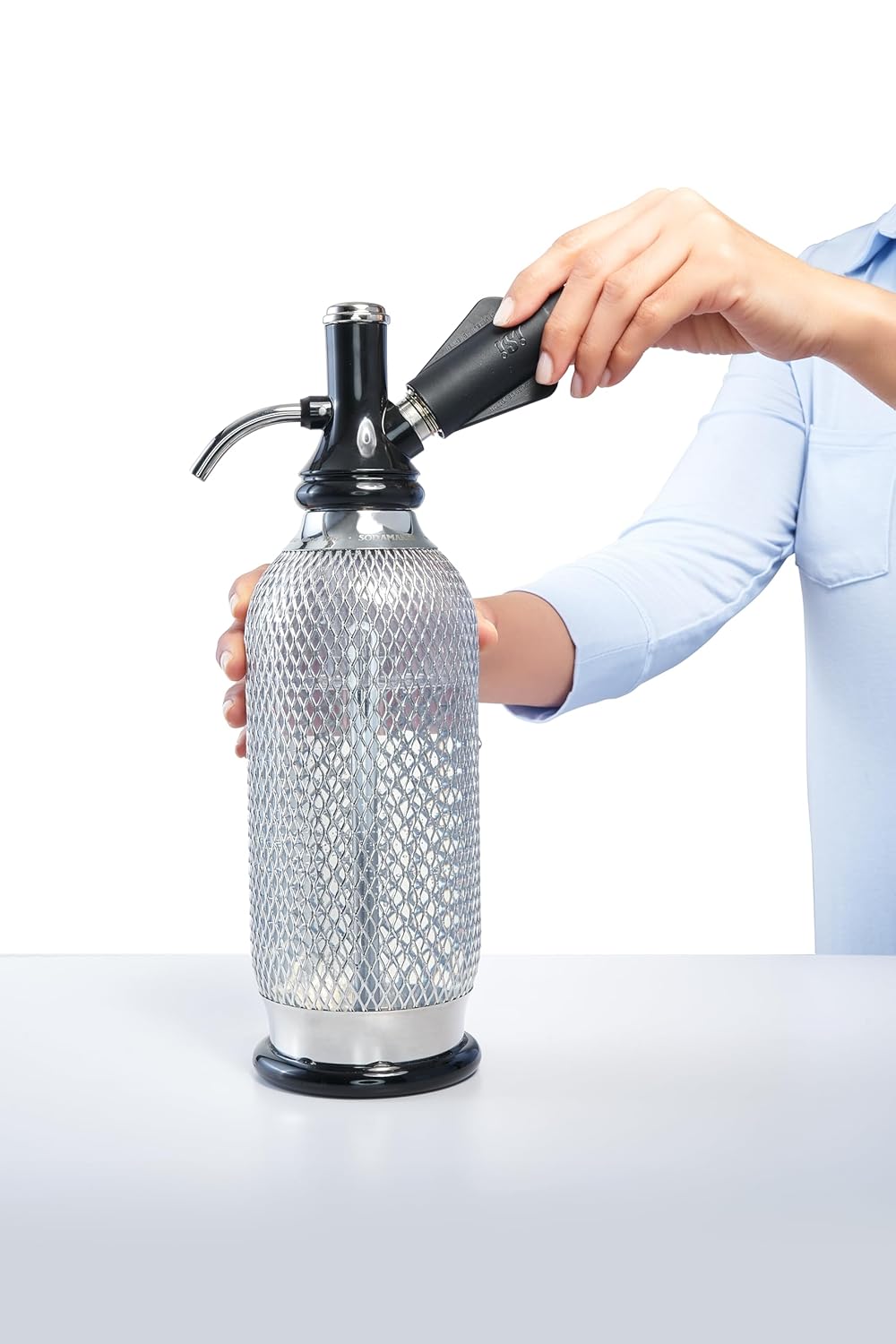 The iSi Classic SodaMaker is the stylish and convenient way to carbonate water and create sparkling mixed beverages for friends and family. Share the tradition of iSi's original design from 150 years ago- reinterpreted with modern materials preserving the classic look. Enjoy the fresh and healthy fizz of sparkling water, carbonated juice drinks, wine spritzers and handcrafted cocktails. An easy, convenient way to make and store carbonated water without electricity and counter-top clutter. Made in Austria, the Classic SodaMaker uses iSi CO2 Soda Chargers that are included (50 chargers) in this bundle.