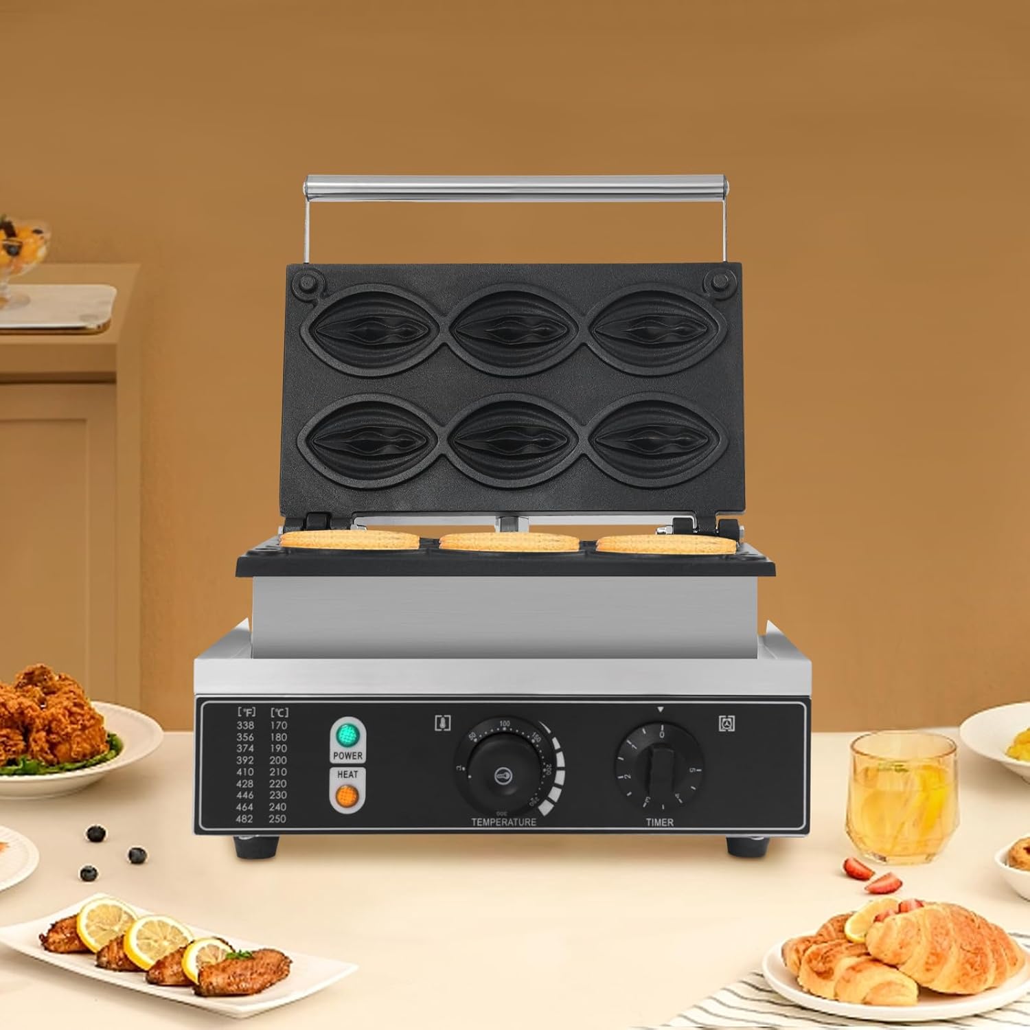 DescriptionThis waffle maker can efficiently produce multiple exquisite abalone-shaped waffles at once, making it extremely suitable for both commercial and household use. It has a precise temperature control function and timing reminder mechanism, greatly simplifying the operation process, and making it easy for even novice bakers to get started. Moreover, this product not only has a stylish and elegant appearance but also has a sturdy and simple structure, making it an ideal choice for pursuing an excellent baking experience.SpecificationMaterial: Stainless Steel, RubberColor: SilverProcess: Polishing, Brushed Mounting Type: TabletopWaffle Shape: AbalonePlug Type: US StandardPower Source: Corded ElectricPower: 1.55KWVolts: 110VFrequency: 60HzTiming Range: 1-5 Minutes Temperature: 50-300 ℃/122-572 ℉Each Mold Size(L*W): 9*5.5cm/3.54*2.17inProduct Size: 35.5*27.3*24.5cm/13.98*10.75*9.65inGross Weight: 10kg/22.05 lbsNet Weight: 9.5kg/ 20.94 lbs Package Size: 43*40*28cm/ 16.93*15.75*11.02inPackage Included1* Waffle Maker1* Whisks2* Brushes1* Food Tong4* Cleaning Pads1* English ManualNotes1. Please read the operating manual and labels on the product completely before use. And pay particular attention to the safety instructions included. 2. Please allow the slight color difference caused by the shooting light and the 1-3 cm error due to manual measurement, and make sure you do not mind before ordering.