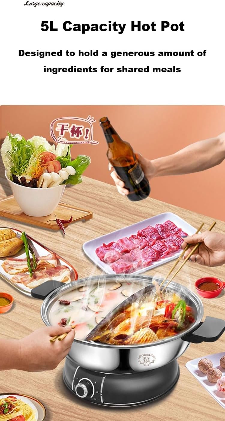 | Special Features | 1500W High-Power Fast Heating, 3-Level Adjustable Temperature Control, 5L Dual-Sided Stainless Steel Pot, ETL Certified Safety and Insulated Handles, Removable Pot for Easy Cleaning |