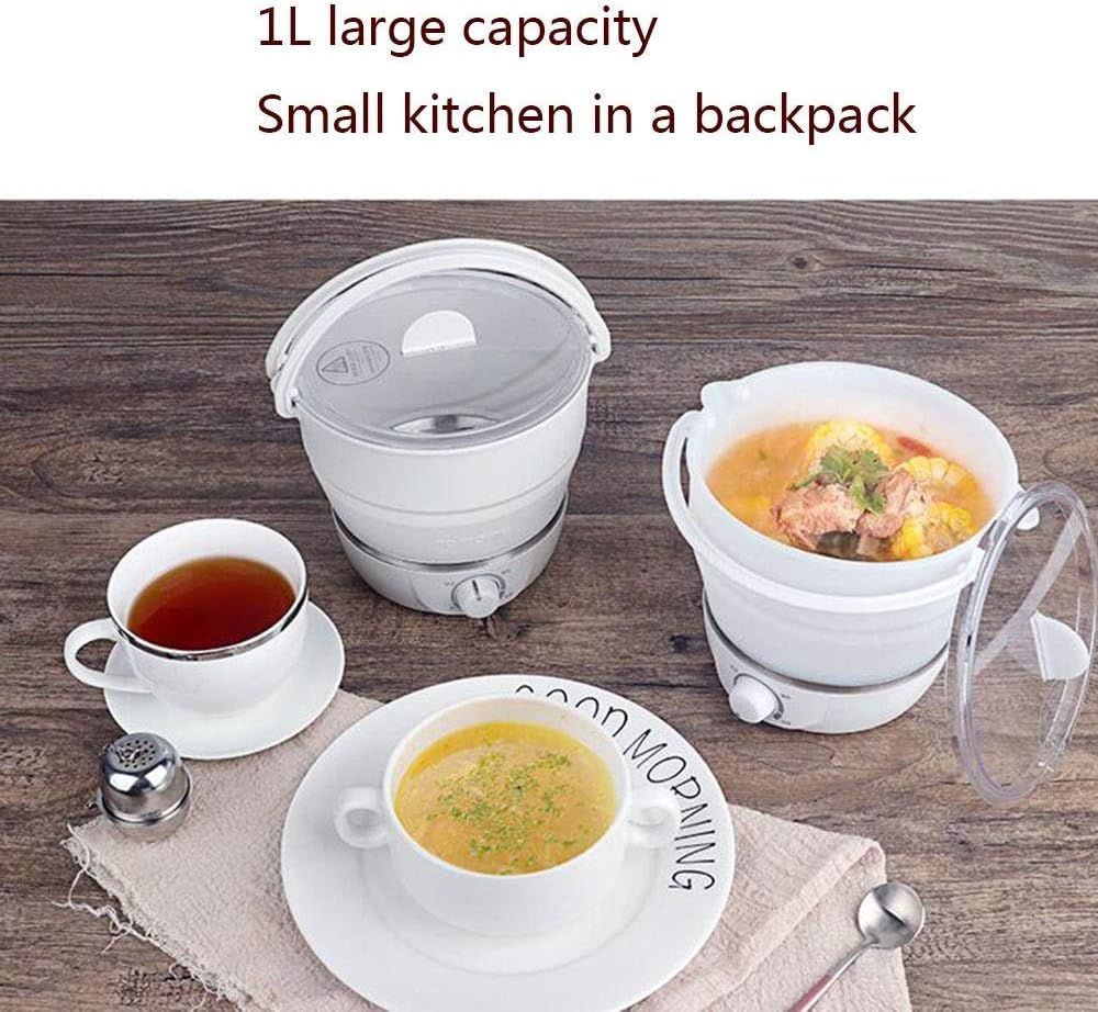 Foldable Electric Hot Pot Cooker Specification: Volume: 1L Weight: 1050g Material: Food grade silicon Voltage: 100-120V~220-240V Wattage: 700-1000W/850-1000W Size before folded: 5.5x7x8 inch Size after folded: 2.5x7x2.6 inch Multi Function for Cook Boiling water Making hot pot Cooking eggs, noodles, pasta, dumplings Multi Occasions for Use For student living in dorm room For worker who's hungry at the office For people living in the rented without kitchen For people while go camping or traveling or go abroad Special unique folding function saving space Food grade silicon and stainless steel for easy clean Dual 110/220 voltage knob can be use all over the world. Package Include: 1x Electric Cooker 1x Storage Pouch 1x Cleaning media 3x Universal Adaptor Notice: Please adjust the correct 110 or 220 voltage knob at the base before using.