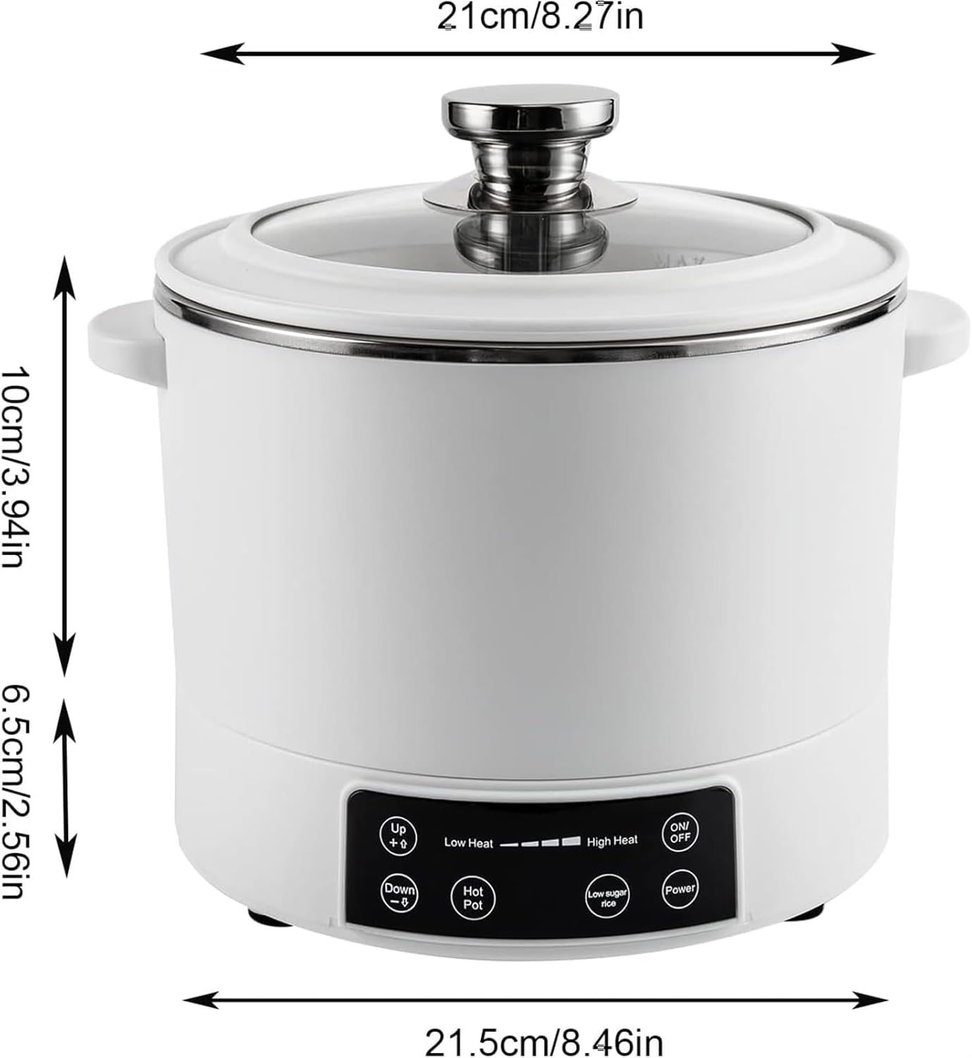 ApplicationThis little kitchen helper is suitable for cooking hot pot, rice, hot soup, and other gourmet food.SpecificationMaterial: 304Stainless Steel, Food-grade PP, Tempered GlassPower: 1500WVoltage: 110VMounting Type: Free-standingShape: RoundCapacity: 3L/3.2QtGross Weight: 2.6kg/5.7lbsNet Weight: 2.2kg/4.9lbsPackage Size: 28.8*24.8*28.5cm/11.3*9.8*11.2inProduct Inner Pot Diameter: 21cm/8.27inOuter Diameter: 21.5cm/8.46inBase Height: 6.5cm/2.56inPot Depth: 10cm/3.94inPackage Included1*Lifting Electric Hot Pot1*Rice Spoon1*Measuring Cup1*English Manual