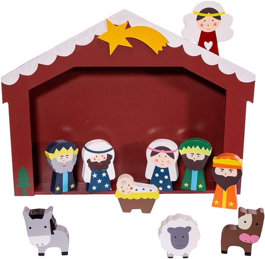 This 2-3-Inch Wooden Children's Nativity Set with Stable and 10 Figures from Kurt Adler is a beautiful, detailed way to add to your Christmas décor while being reminded of the true meaning of Christmas. This set of 10 figurines features the Holy Family, the Three Wise Men, an angel, a donkey, a cow, and a sheep inside their stable. The perfect addition to any holiday décor!