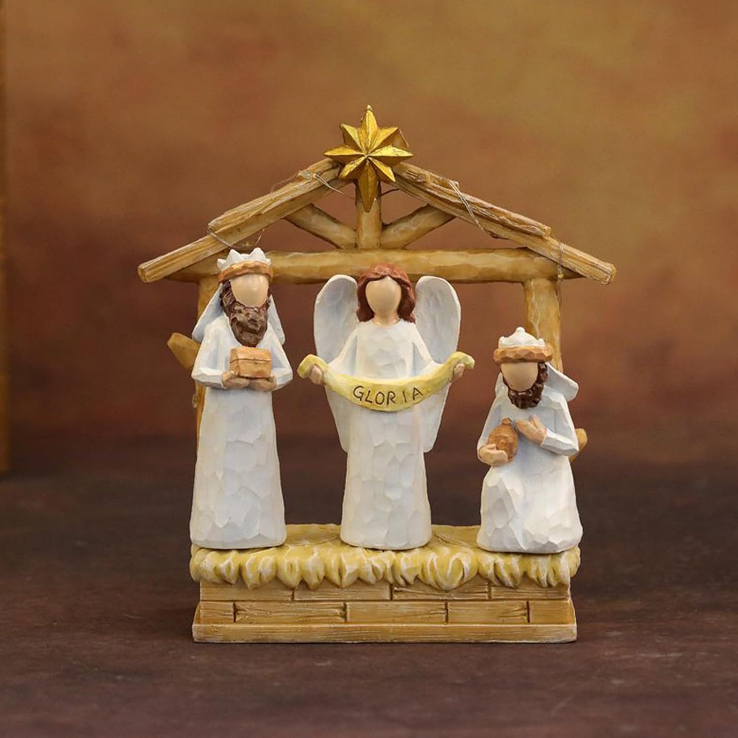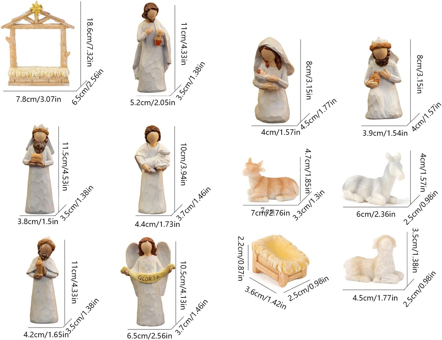 Christmas Nativity Scene Nativity Set Jesus Figurine Tabletop Scenes | 12 Pieces Figurines Christmas Decorations for Indoor Fireplace Table Desk School Church Living Room PartyEnhance your Christmas celebrations with this exquisite 12-piece Nativity Set. Featuring finely detailed figurines, it serves as both a manger statue and elegant home decor. Place it on tables, desks, or bookshelves to enrich your living room or bedroom ambiance. A wonderful addition to indoor settings like fireplaces, parties, and farmhouse themes, this set is also fitting for church and school holiday displays.Specifications:Material: ResinProduct Size: See imageStyle: As shownNote: This nativity scene has lights.Packing List:1 x Christmas Nativity Set (12 Pieces)Notes:1. Due to the different monitor and light effects, the actual color of the item might be slightly different from the color shown in the pictures.2. Please forgive a slight measuring deviation due to manual measurement.