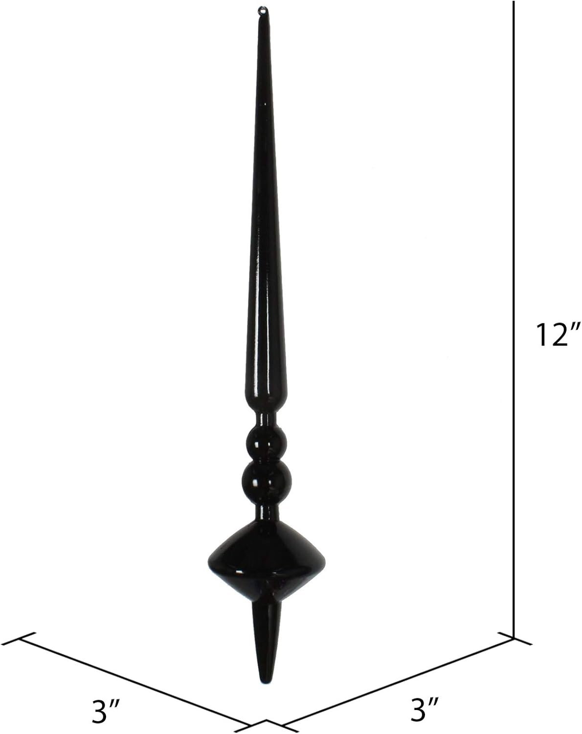 Vickerman 12" Black Shiny Cupola Finial Ornament. This long finial ornament adds depth and texture to any holiday decorating project. It is made from shatterproof plastic and features a loop to ensure it is durable and ready to hang. Shatterproof ornaments are kid and pet friendly and safe for the entire family to help hang on the tree. This unique ornament is an exceptional addition to any collection as it matches well with a variety of décor and goes perfectly on a holiday tree. Vickerman has been an industry leader since 1940. Enjoy this expert designed ornament in your home. Includes 3 ornaments per pack.