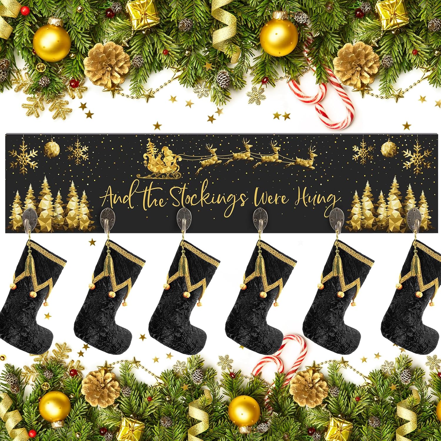 Features: Whether it's your living room, bedroom, kitchen, restaurant, bathroom, or dressing room, the wood Christmas stocking wall hanger can be hung in various settings. It is also an ideal addition to restaurants, hotels, apartments, and dorms, making it multifaceted in its utility. From reindeer and sleds to Santa Claus and snowflakes, this wall mounted stocking holder showcases a range of fun and classic Christmas elements everywhere. These amusing Christmas patterns match well with the winter holiday season, bringing added romance and joy to your festive celebrations. Specifications: Main material: wood Color: white and silver Size: approx. 24.4 x 5.7 x 0.47 inches/ 62 x 14.5 x 1.2 cm Package includes: 1 x Christmas stocking holder with 6 hooks Notes: Manual measurement, please allow slight errors on size. The color may exist a slight difference due to different screen displays.