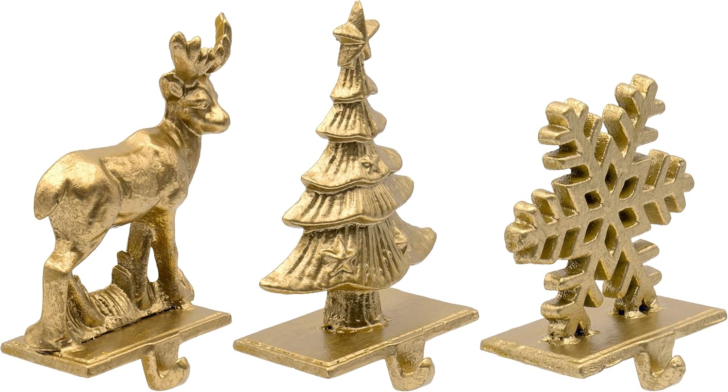 This set of stocking holders is a simple way to hang your garlands, stockings, ornaments, and wreaths on your mantel ledge, windowsill, or shelf without drilling holes or marring the surface with adhesives. Easily removable and compact for storage, they require no additional tools for installation; their wide and sturdy bases keep them in place. Decorative and functional, consider using them all year round as space-saving hangers in your entryway, kitchen, or bathroom—simply place a hanger atop your console table to keep a variety of items handy and visible, such as keys, scarves, shopping bags, purses, pet leashes, towels, or aprons. Display hanging potted plants, decorative wreaths, and other objects and ornaments. This practical and attractive set is a great present for your friends and family.