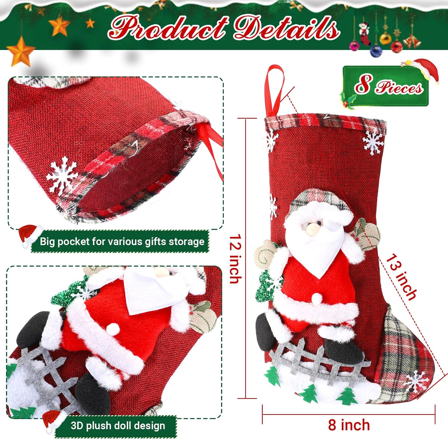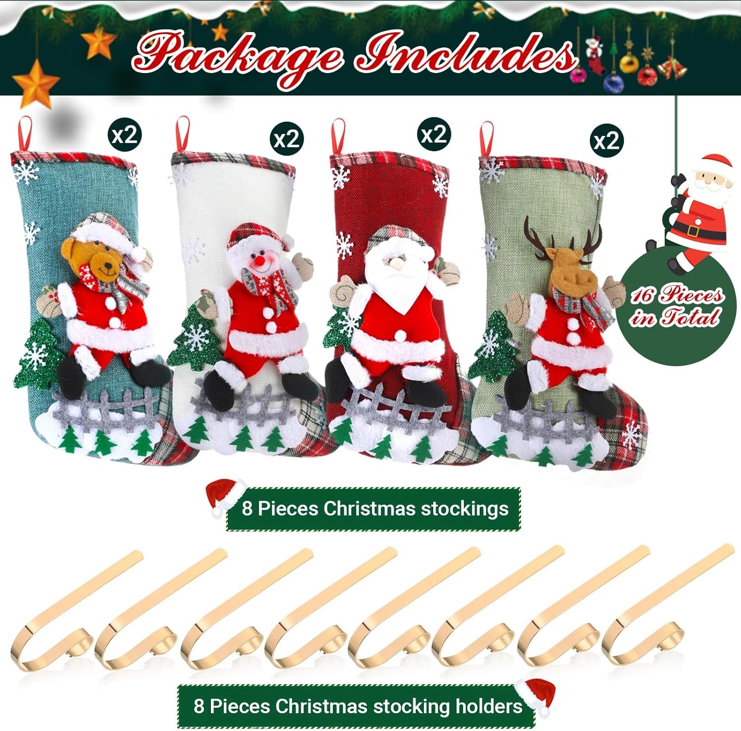 Features: Heartwarming gift: This fabric Christmas stocking will be a thoughtful housewarming present for your children or loved one, and you can be sure to win their appreciation and create beautiful holiday memories for them. Just imagine how excited they are when your boys and girls get it in the Christmas morning. Extensive application: The fabric holiday socks are nice for hanging on the Christmas tree, wall, door, and fireplace, and the stockings have a large opening and a spacious interior to hold gift cards, candy canes, chocolate bars, small toys and others, multi-functional use to satisfy your daily use. Specifications: Material: Christmas stockings: fabric Stocking holders: zinc alloy Size: as picture shown Color: as picture shown Package includes: 8 Pieces Christmas stockings 8 Pieces stocking holders Notes: Please allow slight size difference due to different screens. The color may exist slight difference due to different screen displays.