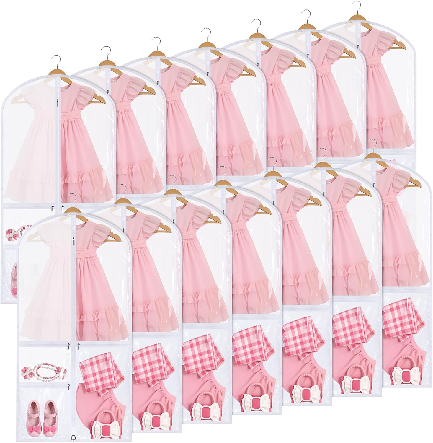 Features: These plastic garment bags for hanging clothes is compact and portable, without taking up too much space, easy for you to take and store, bringing you much convenience. This girls garment bag is a considerate and pragmatic present to your family members, friends, conveying your love, care and kindness to them, getting relationships and emotions closer with each other. Specifications: Material: fabric, PVC Color: black Size: about 20 x 40 inches/ 50 x 100 cm Package includes: 14 x Black garment bags Notes: Manual measurement, please allow slight errors on size. The color may exist a slight difference due to different screen displays. Suffocation risk may exist, please stay away from kids.