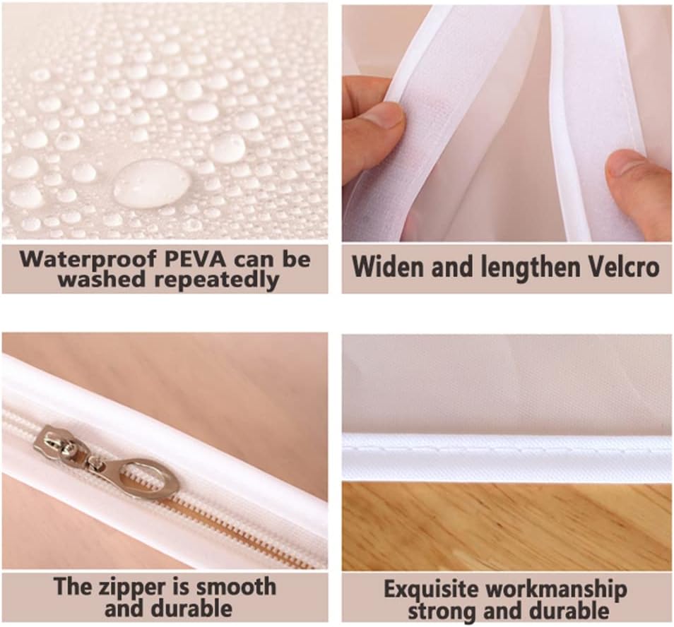 • PEVA material: washable translucent cover, moisture-proof, dust-proof, and tasteless, keeping your clothes fresh and clean, and can be used for a long time. After using for a period of time, just wipe with clean water to wipe off the dust.