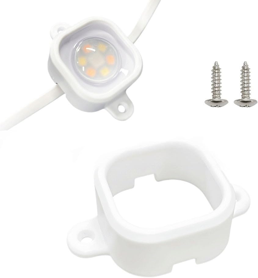 Features:*Enhanced Stability: Designed specifically for outdoor lights (Model H706), these clips that your light modules remain securely in place, even in extreme weather conditions like heavy rain and strong winds, allowing you to enjoy your outdoor space without interruptions.*Easy Installation: No need to remove your existing lights; the clips are easy to install by simply clamping onto the light fixtures and securing them with screws. They are suitable for a variety of surfaces, making the setup process quick and hassle-free.*Dual Safety Design: Each clip surrounds the light module completely and provides dual protection through its secure top fastening. This design, combined with a physical clamping mechanism and wire support, offers enhanced stability and prevents your lights from falling or loosening.*Material: Crafted from high-strength for PETG plastic, these clips are designed to withstand both high and low temperatures. Their robust construction ensures long-lasting performance, making them for various outdoor conditions, from scorching summer heat to freezing winter cold.*Flexible Kit Sizes: Available in three different kit sizes, these clips provide you with the flexibility to choose the right size based on your installation needs, whether for small or large areas, convenience for any outdoor lighting project.Specifications:Part Name:Light Clips for Outdoor Lights H706Material:high-strength for PETG plasticSize:60*39*19mmColor:WhitePackage Content:30 * :Light Clipsor60 * :Light Clipsor90 * :Light Clips