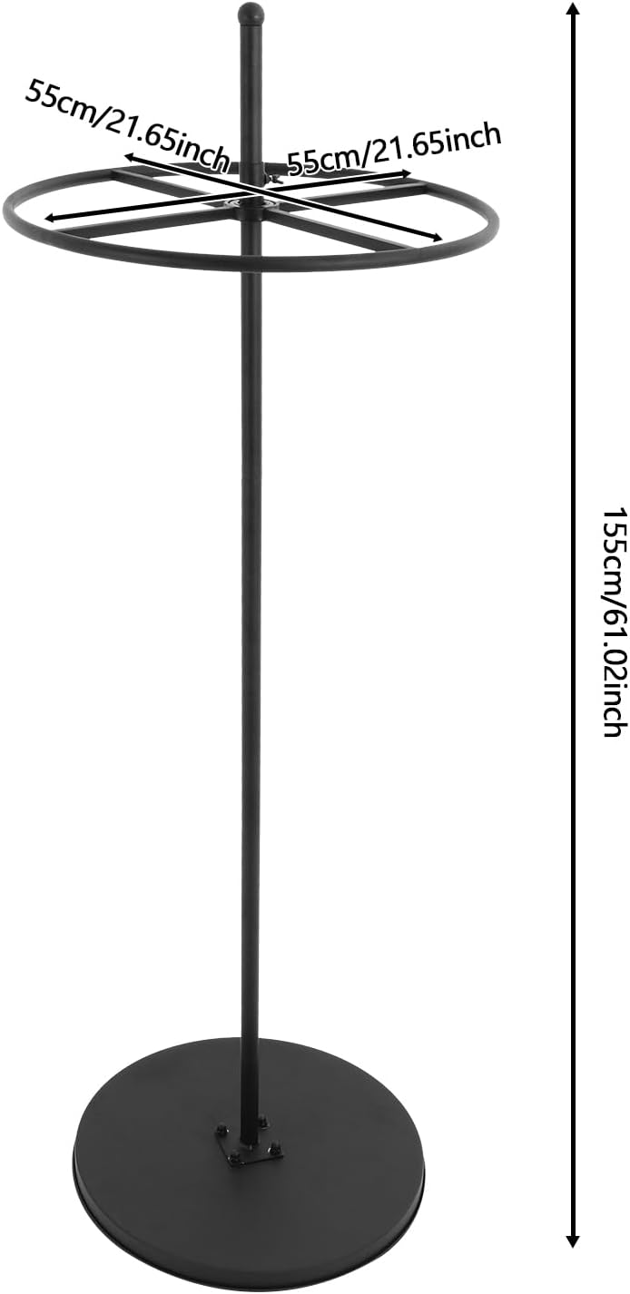 SpecificationMaterial: SteelProcess: High-temperature Baking PaintColor: BlackStyle: ModernShape: RoundMount Type: Floor StandingAssembly Required: YesLoad-bearing Capacity: 20kg/44.09lbsRound Hanging Frame Height Adjustment Range: 10-145cm/3.94-57.09inPad Adjustment Range: About 1 cm/0.39inRound Hanging Frame Diameter: 55cm/21.65inProduct Height: 155cm/61.02inPackage Size: 57*57*10cm/22.44*22.44*3.94inGross Weight: 5.5kg/12.13lbsNet Weight: 4.5kg/9.92lbsPackage Included1* Clothing Display Stand1* English Installation Diagram4* Foot PadsAll Accessories for AssemblyNotes1.Please check the size carefully before ordering.2.Please note that clothes are not included in this product.3.Please allow the slight color difference caused by the shooting light and 1-3 cm error due to manual measurement, and make sure you do not mind before ordering.
