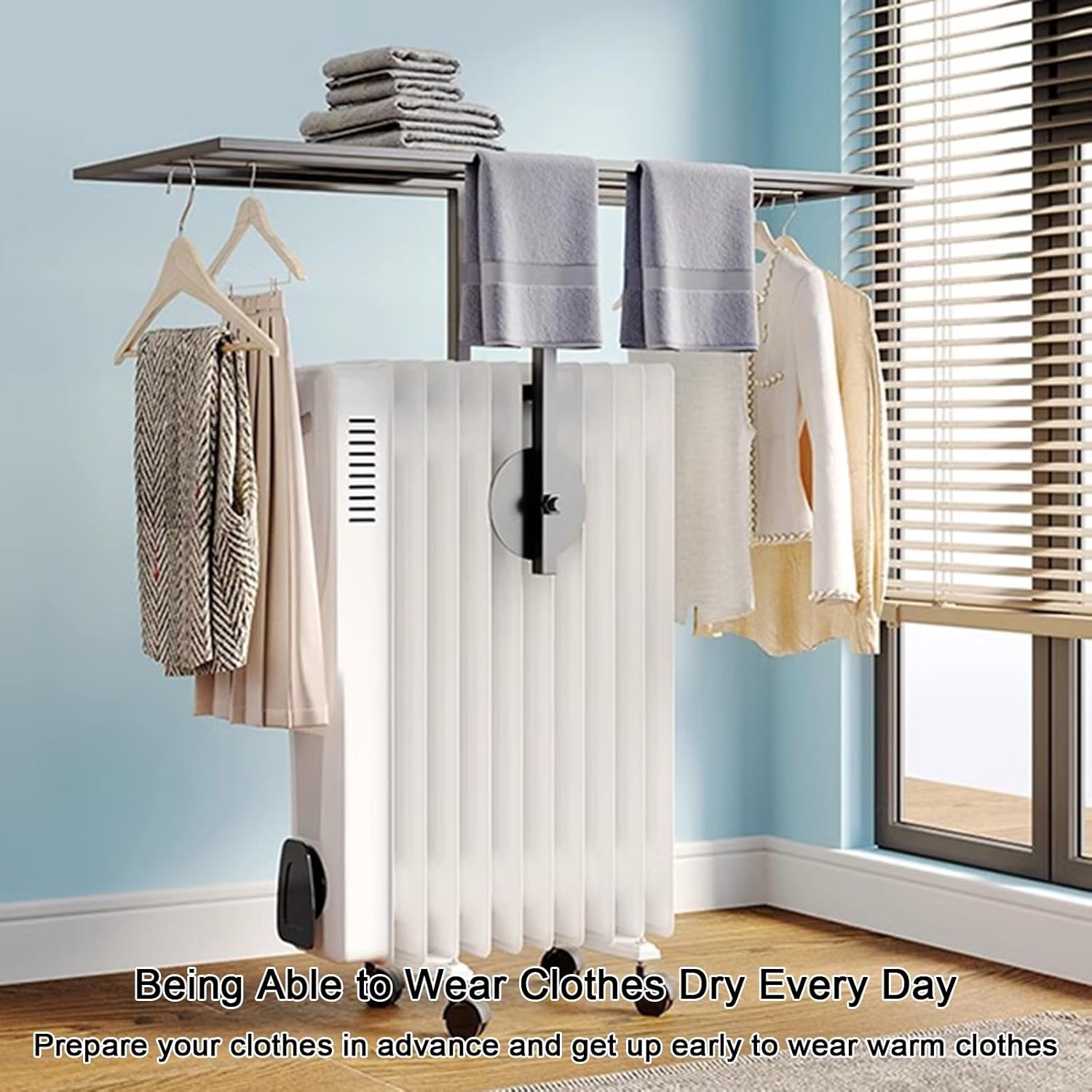 This multi-functional radiator clothes rack is designed to solve the problem of clothes not drying well in winter and on rainy days.It cleverly utilizes the heat generated by an oil-filled radiator, transforming unused space into a highly efficient drying area, allowing you to wear warm, dry, and fresh clothes every day.Unlike traditional floor-standing clothes racks, it sits directly above the radiator, taking up no floor space. It's perfect for apartments, dormitories, laundry rooms, or small homes with limited space.Material: Thickened ironFeatures: Radiator-compatible bottom, Multi-layer dryingDimensions: 16x16x47in, 24x16x47in, 31x16x47in, 39x16x47in, 47x16x47inPackage List: Radiator Clothes Airer x1