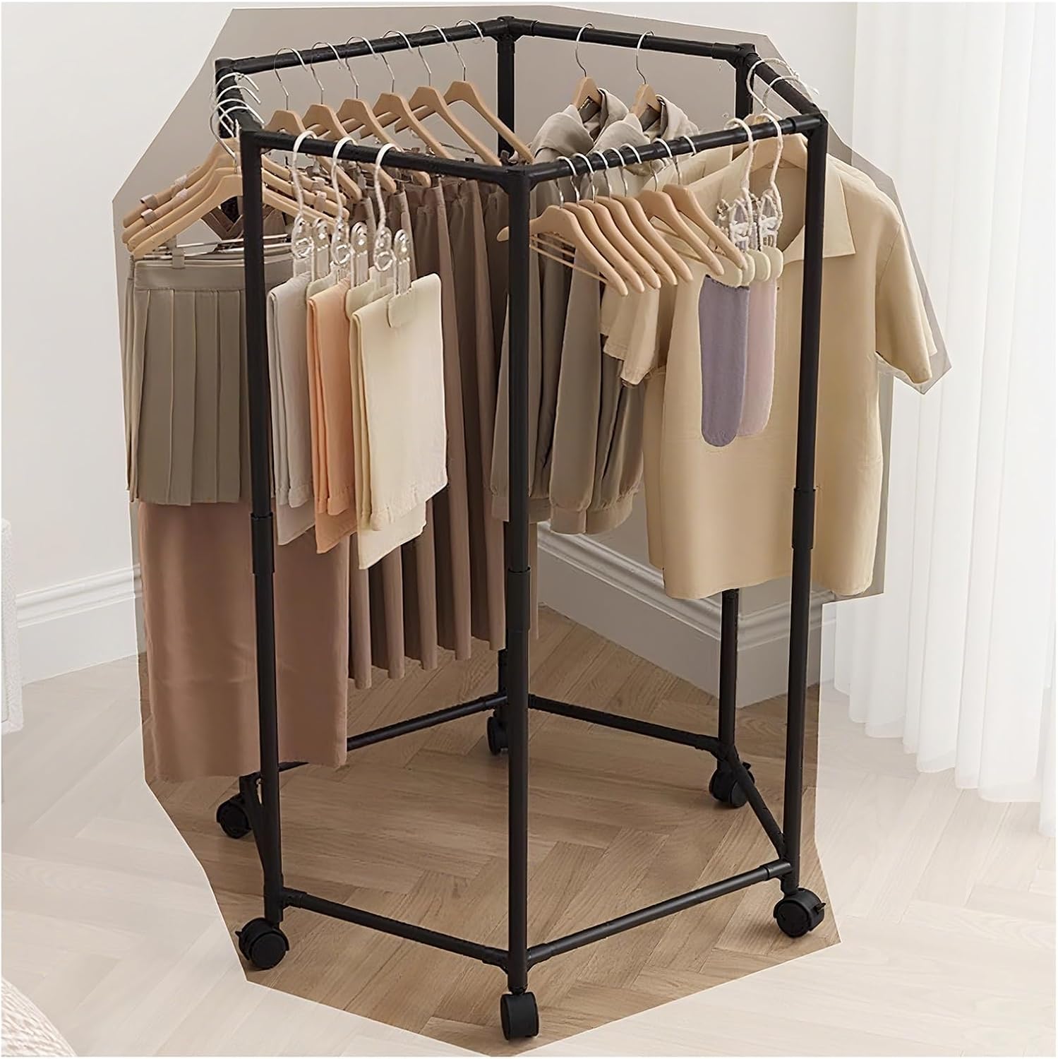 This modern and simple coat rack is made of steel and has universal wheels at the bottom for easy movement. It can accommodate multiple pieces of clothing and is suitable for displaying various styles of clothing. It is a rational choice for retail stores, bedrooms, boutiques, shopping malls, children's clothing stores, cloakrooms, shopping malls and other places.Product Specifications:Name: Hexagonal Clothing RackMaterial: Steel,PP PlasticColor:White,BlackSize (LxWxH):74.5x74.5x120cm/29.3"x29.3"x47.24"Packing list:Metal Diamond-shaped Clothing Rack x1
