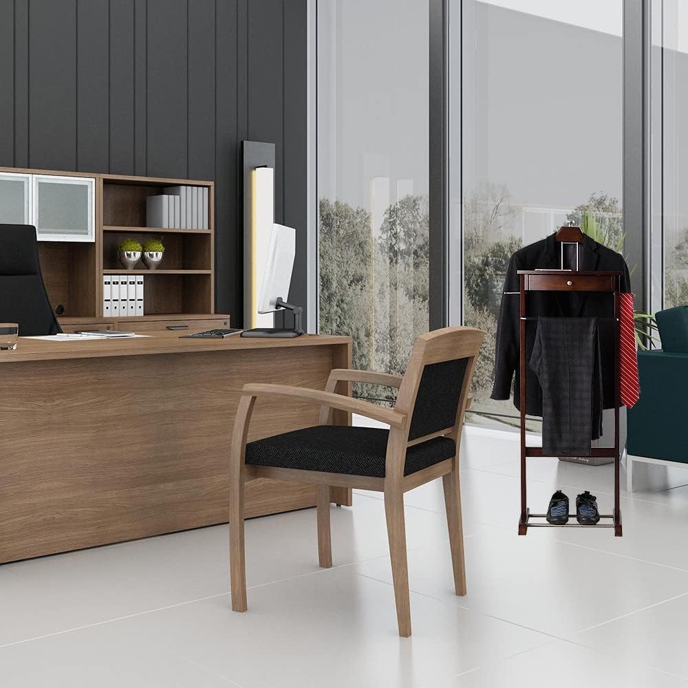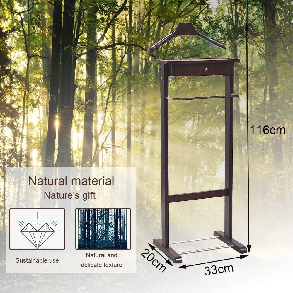 Clothes butler stand has multiple functions, a valet stand for clothes, trousers and even ties, perfect for the needs of both women and men. It can be used in office, bedroom, living room. Features: 1.With this suit rack, your clothes will not wrinkle, which is very suitable for hanging suits. 2.According to your needs and wishes, freely placed in each room, practical and durable. 3. With a sturdy base, stable load-bearing 4. Shelves and drawers can be used well to store keys, belts, ties, watches, etc. 5. Curved wide shoulder hanger Specification: Color:brown Material: Solid wood Size: 33*20*116cm Package include: 1 x Suit Hanger Rack We are committed to high quality products and provide our customers with high quality customer service and user experience! !