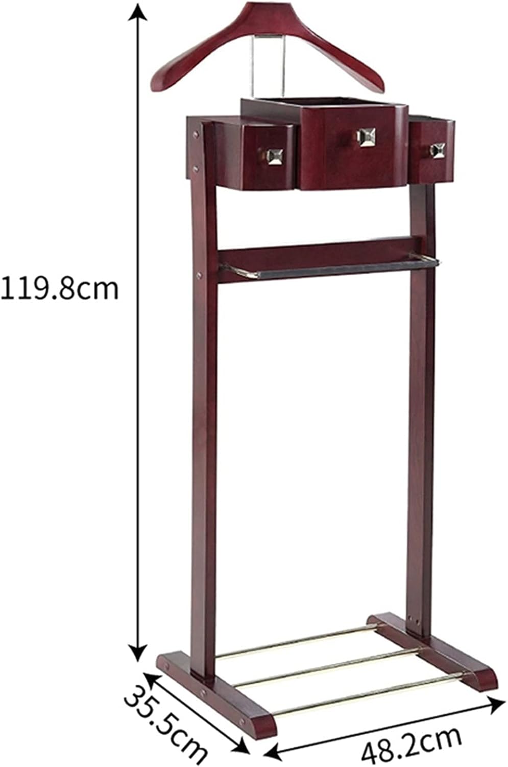 Coat Rack Valet Stand Clothes Rack with Shelves and Drawers Hanger Storage Product Size : 48.2*35.5*119.8cm Color : As Pictures Shown with fitting hanger, trouser bar , Shoe Rack and 3 Drawer Material : Solid Wood Assembly Required Included in Delivery - 1x Suit Valet Stand - Assembly Materials and Instructions - Decorative items shown in product photos are not included