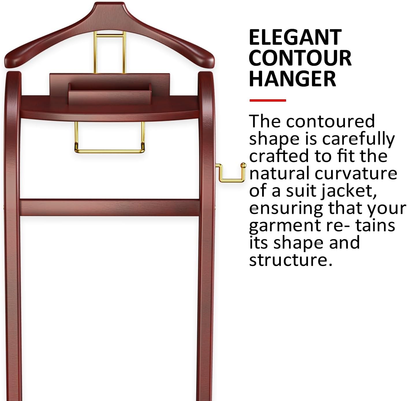Transform your daily routine with our versatile valet stand, expertly designed for suits, pants, shoes, and accessories. Eliminate the hassle of searching through drawers or dealing with mismatched items. With this elegant solution, you can effortlessly grab your pre-nized outfit and head out the door, ensuring you always look polished, even on your busiest days. **Key Features:** 1. **Wider Shoulder Support:** Protects the silhouette of your suit or shirt, keeping it in pristine condition. 2. **Large Capacity Tray:** Perfect for sorting watches, jewelry, and keys, ensuring everything you need is within reach. 3. **Anti-Slip Trouser Rack Rail:** Designed to prevent creases, maintaining the sharp look of your trousers. 4. **Stable Base:** Ideal for placing leather shoes, ready for use the next day. **Specifications:** - **Color:** Walnut - **Material:** Poplar - **Valet Type:** Freestanding - **Item Size:** 16 x 14 x 45 inches - **Assembly:** Requires assembly - **Package Contents:** 1 x Solid Wood Suit Rack This valet stand not only enhances the nization of your space but also adds a touch of sophistication to your daily routine. Its clutter-free design promotes tidiness, making it an essential addition to any modern home. Experience the convenience of having everything you need in one place, making your mornings smoother and more efficient. Upgrade your wardrobe nization today and enjoy a stylish, streamlined start to your day.