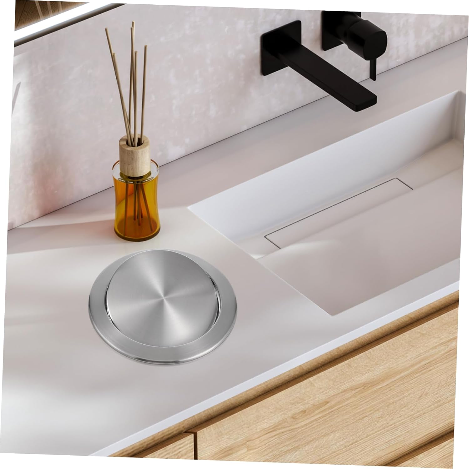 Package List 1 x recessed cover Characteristics -Color:Silver Bathroom Accessory -Material:stainless steel Countertop Trash Lid -Size:26.80X26.80X3.30cm/10.53X10.53X1.30in(Max outside diameter) Round Garbage Lid -Size:20.80X20.80X3.30cm/8.17X8.17X1.30in(Cap diameter) Recessed Trash Can Lid - Size is ideal for small spaces,such as cabinets, office, tabletop and countertop Round Recessed Countertop Cover. - This trash can lid is commonly used trash grommets flap cover used for commercial purpose Trash Can Covers - Suitable for restaurant kitchens, hotel bathrooms, airport bathrooms, hospital workbenches, home kitchens, workshop workbenches Flap Trash Can Lid. - The surface is smooth and easy to wipe, making it easy for you to clean the lid Recessed Countertop Cover. - Suitable for Trash Bin with hole opening 22-26cm Kitchen Accessory - This trash bin lid is widely applied in home, restaurant, cafe, office, restroom, mall, and etc Trash Lid.Goods InformationEmbedded Type Trash Bin Cover This swing lid is designed to be both practical and space-saving, making it the choice for any environment where cleanliness and efficiency are priority.Can Cover The stainless steel recessed trash can lid is a versatile and practical accessory that is for use in a wide range of settings, including restaurants, hotels, airports, hospitals, and homes