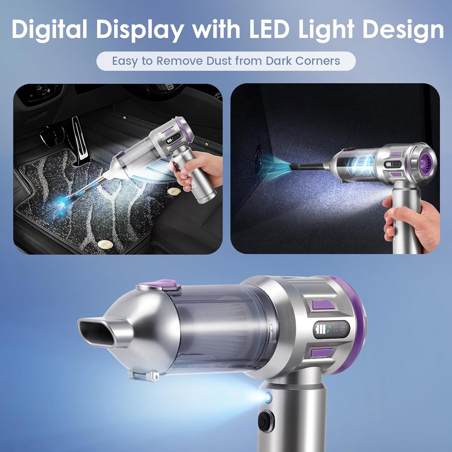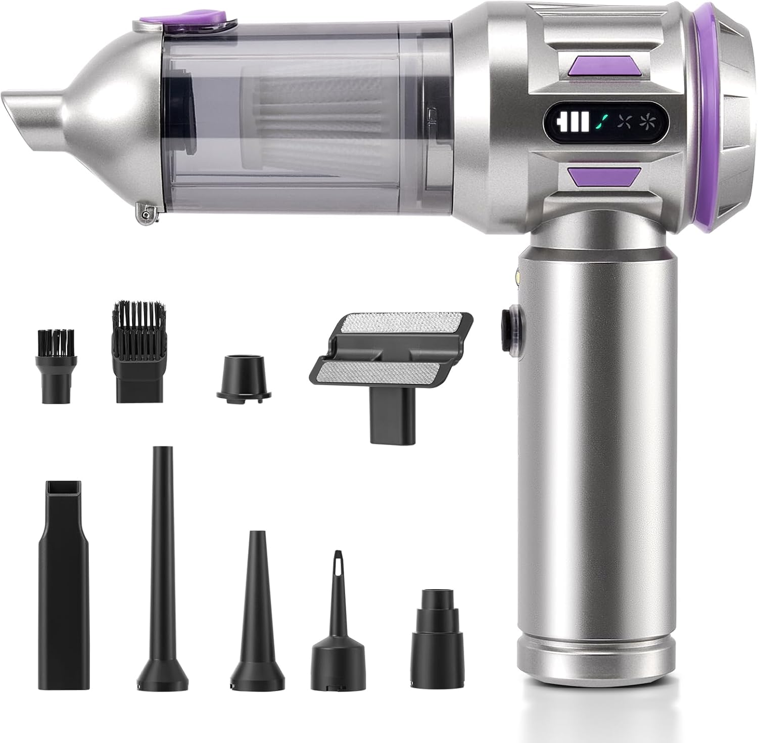 Introducing the Cordless Car Vacuum Cleaner – a powerful and versatile cleaning tool designed for your car, home, office, and outdoor trips. It features an upgraded brushless motor that delivers strong suction up to 22000PA, easily removing pet hair, crumbs, and hidden debris. This 4-in-1 handheld vacuum also functions as an air duster, blower, and inflate, offering multiple ways to clean and maintain your spaces. Lightweight, rechargeable via Type-C, and packed with practical accessories, it’s the all-in-one portable solution for efficient cleaning anywhere.