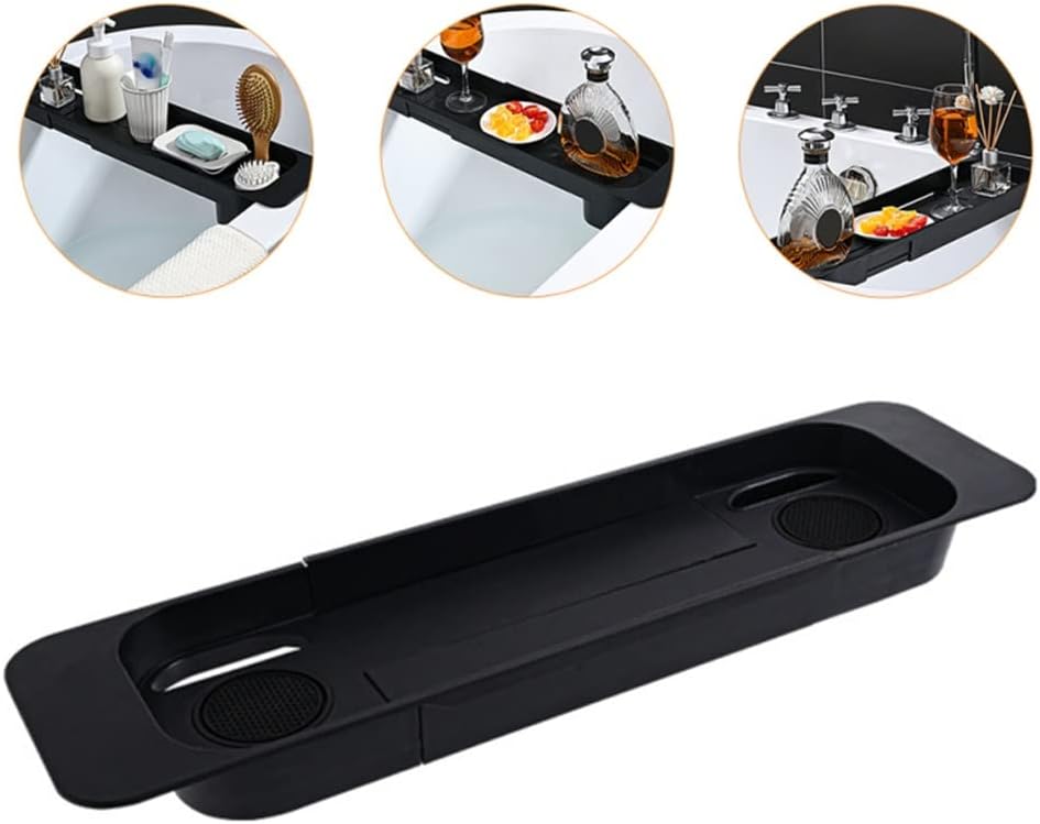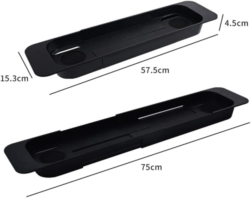 Color: Black.Material: Plastic.Size: 57.00X15.30X5.00cm/22.40X6.01X1.97inMobile , tablet or book can be placed in the middle, and body wash and towel can be placed on both sides.With stretchable design and Anti-slip design, it can provide you a better reading experience while taking a bath.Made of plastic materials, durable and safe for a time use.With workmanship, not easy to wear and tear, very practical in use.for your friends and families. They will be very happy.Package Include: 1PC Bathtub Caddy Tray.The dressing table tray can create additional storage space in areas such as the bathroom dressing table, desk, dressing table, office desk, etc.