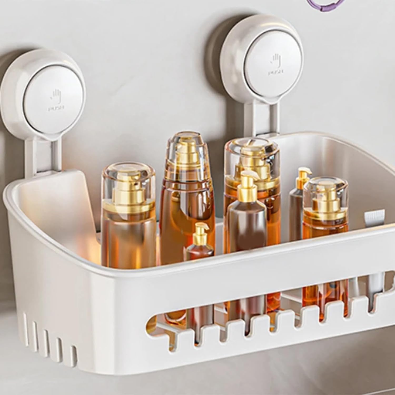 Product description The shampoo toiletry organizer is designed to maximize storage efficiency in various settings, featuring a sturdy suction cup mechanism for secure placement. This versatile rack serves as a key shelf solution for organizing shower items, ensuring easy access and clutter-free spaces. Ideal for home bathrooms, college dorms, or farmhouse kitchens, the organizer seamlessly blends functionality with practicality. Its durable design makes it suitable for hotel bathrooms, toilets, or even kitchen use, enhancing convenience in any environment. The shampoo toiletry organizer simplifies daily routines by keeping items neatly stored and within reach, making it an indispensable addition to your living space.SpecificationProduct name: Shower storage boxLoad bearing: up to 10KGMaterial: ABSList1x Suction cup shower rackNotes: 1. Due to the lighting effects and photographing angles, there is a color difference in the product. Please understand.2. Due to manual measurement, there is a tolerance in the product size. Manufacturer Contact Information Refer to description