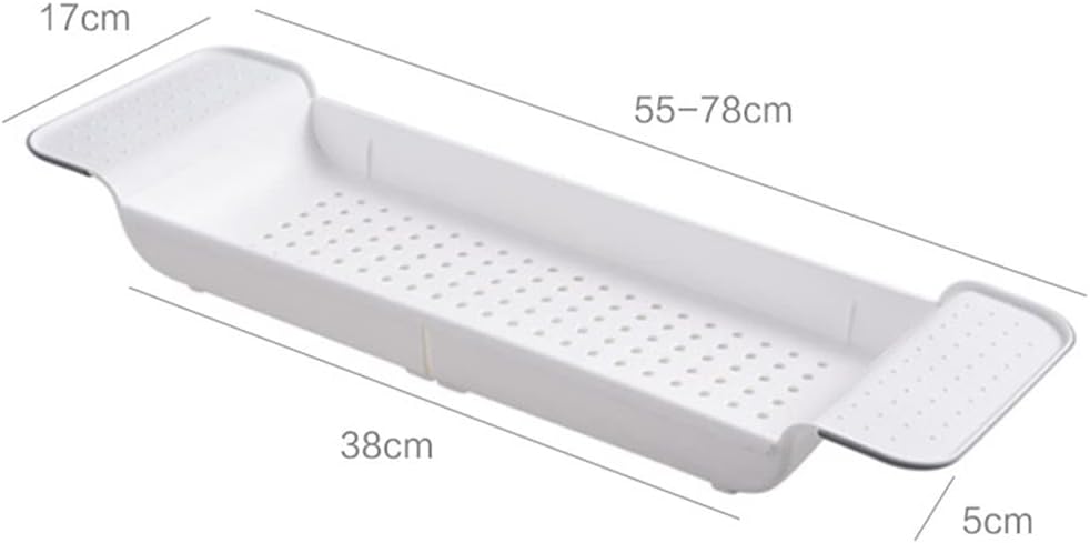 Bathtub Trays.Bathroom Tools Makeup Towel Organizer.Kitchen Sink Bowl Cup Drain Holder.You can enjoy the food while taking a bath.Toiletries can be placed.Material: ABSWeight: About 650gColor: Grey, WhiteSize: (55~78)*17*5cmPackage Include: 1PC Bathtub Caddy Tray.NOTE:Due to the difference between different monitors, the picture may not reflect the actual color of the item.Please allow 1~2cm deviation exists due to the different measuring way, Thank you.Storage and Organization: This is multifunctional, you can place it in your bathroom to display your cosmetics, toiletries, skincare products. It can also be used as a kitchen organizer to hold pepper, olive oil bottles and other spices, and as a table tray in your living room to organize your candys and snacks
