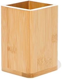 Decorative Natural wood square tumbler or toothbrush holder. Made in Italy. Color: Natural UPC: 637509947682