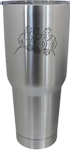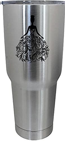 This is a high quality 30oz Stainless Steel Tumbler etched with a beautiful wedding design. The laser interacts with the steel to create a unique black finish look that is smooth and very detailed. The etching is guaranteed to never fade or wear off.