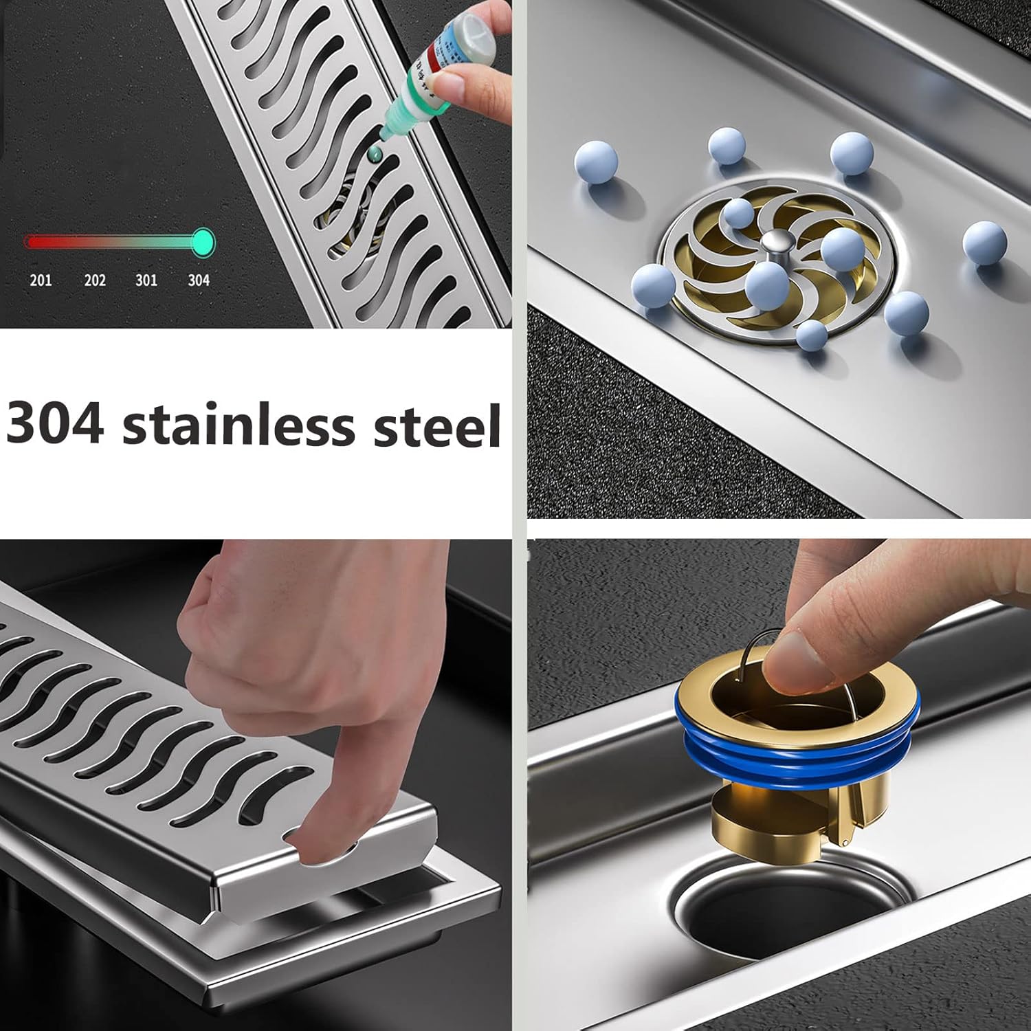 Linear Grille Bathroom Floor Drain --- The perfect combination of modern design and practicalSpecification:- Material: 304 Stainless steel- Feature: Anti-clogging & Antiinsects AntiodorsColor: Chrome- Width: 10CM- Length: 20-60CM- Outlet Size: φ4cm high flow bottom outlet- 2 styles: middle drain, side drainPack Included:1 x Linear Shower DrainFeature:- Premium 304 stainless steel, awesome look, Scratch resistant, Rust proof and strong enough to extend the service life.- high displacement- prevents unpleasant smell- keep unwanted insect from coming up- anti-clogging- easy to clean- Stable performance, no rust, low temperature resistant- Installation way: ground- It can be used in kitchen, bathroom, garage, basement and toilet.Note:Applicable dia of the sewer pipe need to be 50-75mm,Depth >68mm.