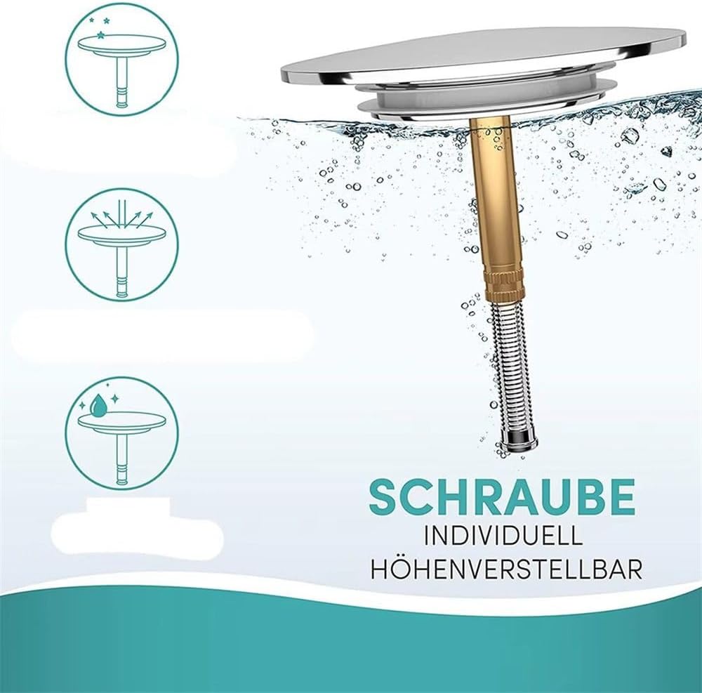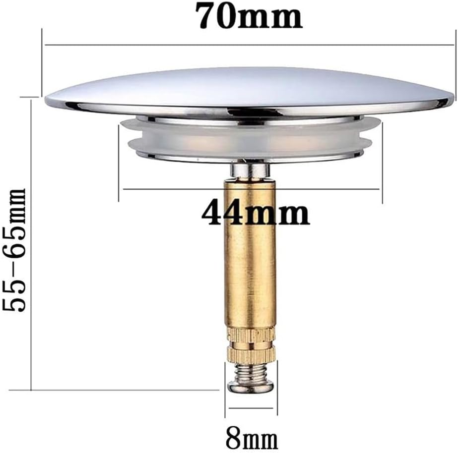 Material: brass + electroplatingColor: silverDiameter: approx. 70mm(2.76in)Height: 55-65MM(2.17-2.56in) adjustable1. 【Sturdy and Rustproof】 Our pop-up bathtub stopper is made of heavy-duty brass, and the silicone seal ring has a durable structure, which is rust-proof and sturdy. The bathtub stopper can seal the sink hole or drain quickly.2. 【Bathtub Stopper】 Our adjustable bathtub stopper rod fits most standard bathtubs perfectly, and the good rubber ring prevents leakage. Note: Please check your sink hole before purchasing!3. 【Height Adjustable】 Put the chrome pop-up bathtub stopper 70mm into the drain hole, and easily adjust the height of the drain stopper by hand, the maximum screw length is 55-65mm (see picture), and the stopper can be removed without tools.4. 【Easy to Install】 Our pop-up bathtub stopper replacement comes with a bottom screw, which is easy to unscrew and tighten, and the slotted stopper bolt set is removable, so it is easy to clean.5. 【Bathtub Beautifier】Our chrome push-on bathtub stopper replacement is suitable for bathtubs, and its smooth surface will shine in your bathtub for many years.Package Included:1x Bathtub PlugNotice:1. The real color of the item may be slightly different from the pictures shown on the website caused by many factors such as brightness of your monitor and light brightness.2. Please allow slight manual measurement deviation for the data. Thank for your understanding.