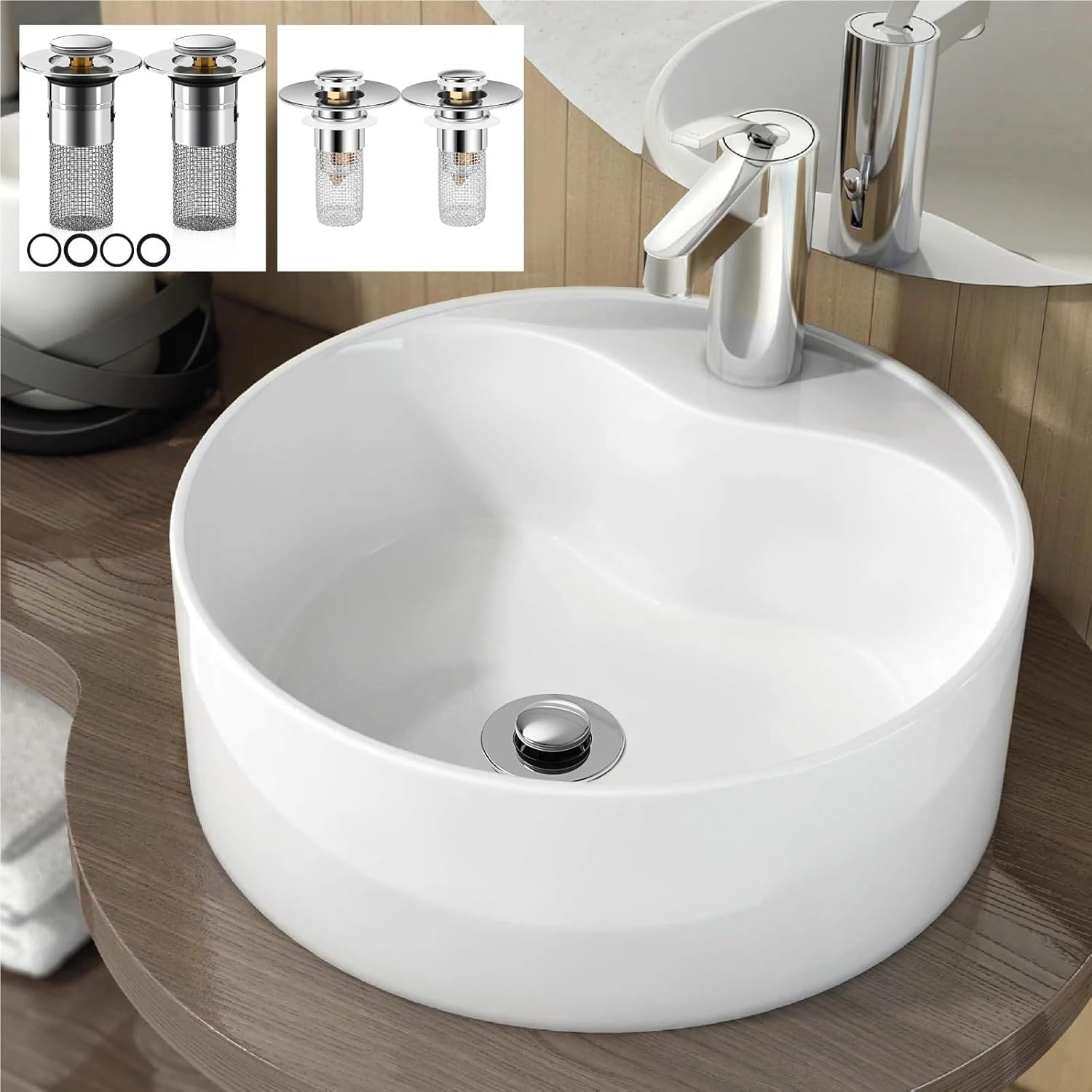 Drain StoppersFunction : Common Floor DrainSurface Treatment : Chrome PlatedModel Number : Bathroom Sink Stopper Filter BasketFloor Drain Method : Gravity Flushing