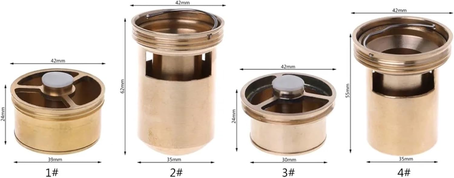 Features:Large hole water design, good effect, fast drainage.Elastic seal design, it can automatically open with water flow and automatically close to without water flow.It is a good choice for your bathroom floor drain and keep your bathroom in a good condition.Specification:Type: Spring core, Sealed core with waterDrainage pipe: diameter50mm, diameter40mmMaterial: BrassDimensions: 1: 2.4x4.2cm/0.94x1.65inch, 2: 6.2x4.2cm/2.44x1.65inch, 3: 2.4x4.2cm/0.94x1.65inch, 4: 5.5x4.2cm/2.17x1.65inchColor: GoldQuantity: 1PcsNote: 1.Please allow 0-1cm error due to manual measurement. pls make sure you do not mind before you bid.2.Due to the difference between different monitors, the picture may not reflect the actual color of the item. Thank you!Package includes:1 x Brass Floor Drain Valve