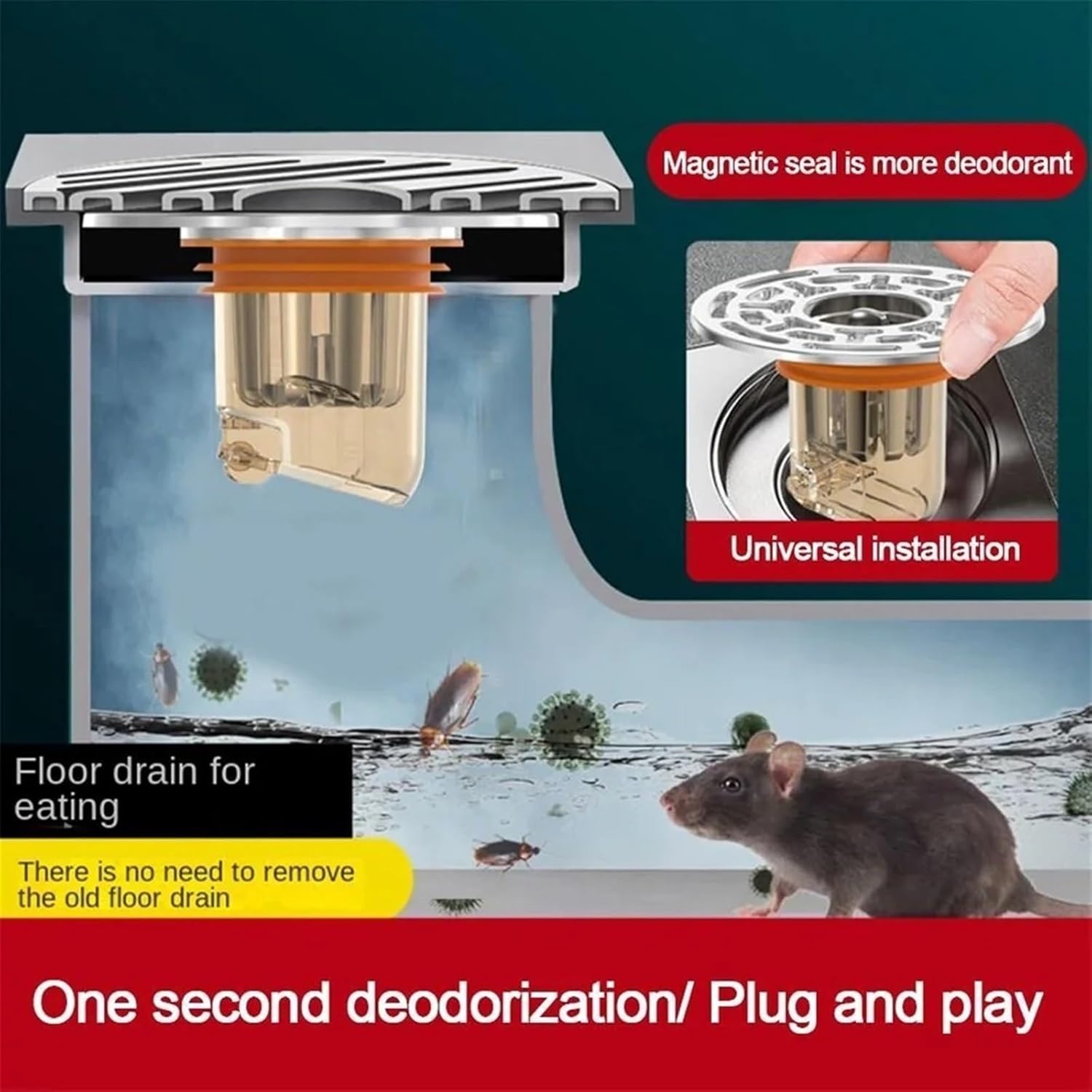 Features:* and play, easy installation*Effectively the hair from entering the pipeline, causing the water pipe to be blocked.*Automatically opens when draining to ensure smooth drainage, and automatically shuts off after draining to seal out odors.Specifications:Features: blocking, odorSize: 72x49x30mmDrainage type: direct drainageMaterial: plastic +siliconePackage Contents:1pc * Floor drain coreNote:1. The real color of the item may be slightly different from the pictures shown on website caused by many factors such as brightness of your monitor and light brightness.2. Please allow slight manual measurement deviation for the data.