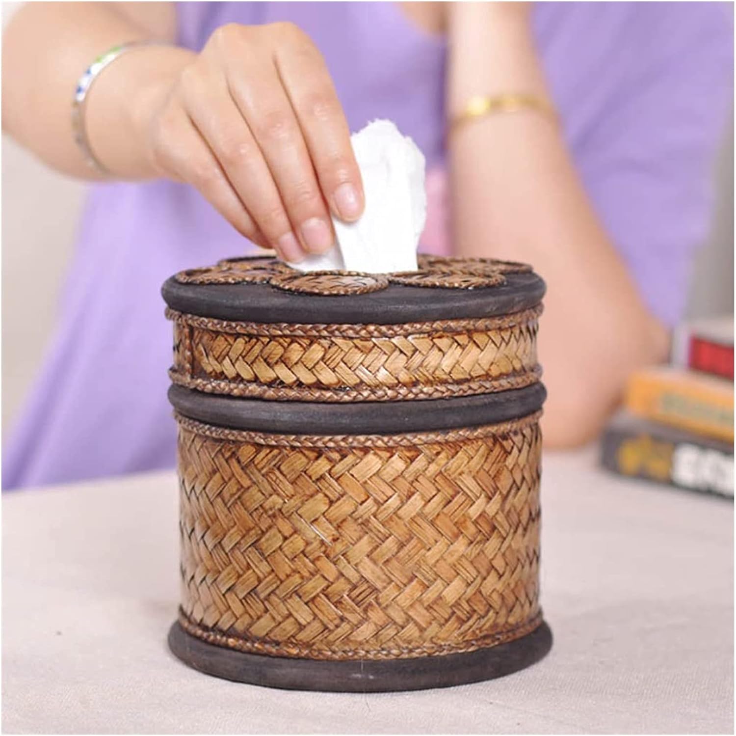This toilet paper holder goes perfectly with any bathroom décor style in your home, office, hotel, restaurant, apartment, villa and other spaces.Product:Tissue Box CoverMaterial: WoodenStyle: VintageShape: roundApplicable space: bedroom, living room, hotel, etc.Size: 15x14cm/5.9x5.5inWeight: 1kgWelcome to my store, if you find any problems with our products, please feel free to contact us via email to solve the problem, we will answer you immediately, hope to get your approval and support, thank you