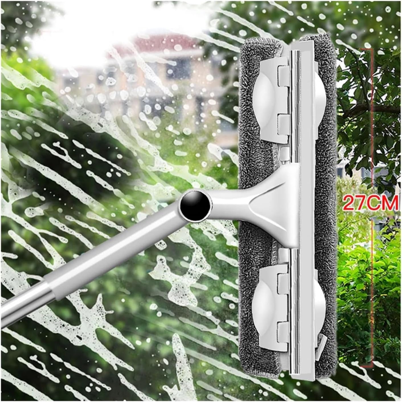 This telescopic glass cleaning mop offers a practical way to reach and clean windows around your home. The adjustable rod extends to your desired length, helping you access high windows and skylights without extra equipment. The two-in-one head first uses soft bristles to loosen light debris, then the flexible squeegee blade clears away water for a clean finish. Use it on exterior windows, shower doors, or bathroom mirrors for consistent results. The lightweight design and comfortable grip make overhead cleaning more manageable. After use, components detach for compact storage. A straightforward tool for maintaining clear glass throughout your household.