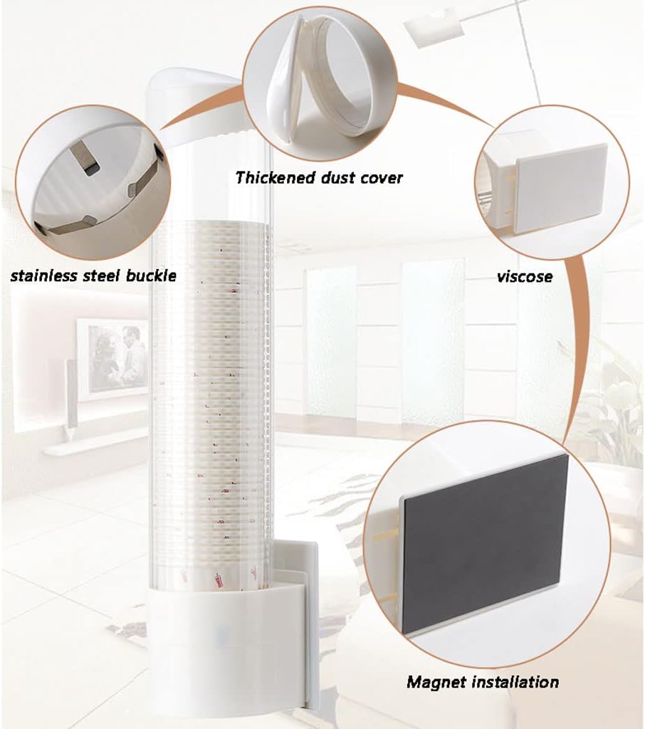 HGRVUTCFIWide Application-Use: This water cup dispenser is suitable for home, install in living room, kitchen and more. It’s also ideal for cafes, food trucks, parties, and other types of beverage service.Product Name:Cup Dispenser/Cup Holder/Pull Type Water Cup Holder/Wall Mounted Cup DispenserMaterial:ABSHolds:70 Cups or soWidely Use: Well-made water cup holder is ideal for cafes, food trucks, parties, and other types of beverage service. Wall-mounted cup dispenser holder for home, living room, kitchen, bathroom and more.Visible Window: Transparent visual cup dispenser helps you to check the use of the paper cups for timely replenishment. Practical and modern stylish water cup dispenser fit all kind of decor.Product List:Cup Dispenser X11. Welcome to our store, we are always ready to provide you with quality products.2. If you need other styles, please contact me.3. If you have any questions, please feel free to contact us by email,we will respond to you as soon as we receive your email.Note:#For manual measurement, please allow an error of 3-5 cm. Please check the size and color before buying# Please note that due to different monitors, there may be slight color difference, please understand*We believe that we can meet your needs with high-quality products. If you find any problems with our products, please feel free to contact us via email to solve the problem