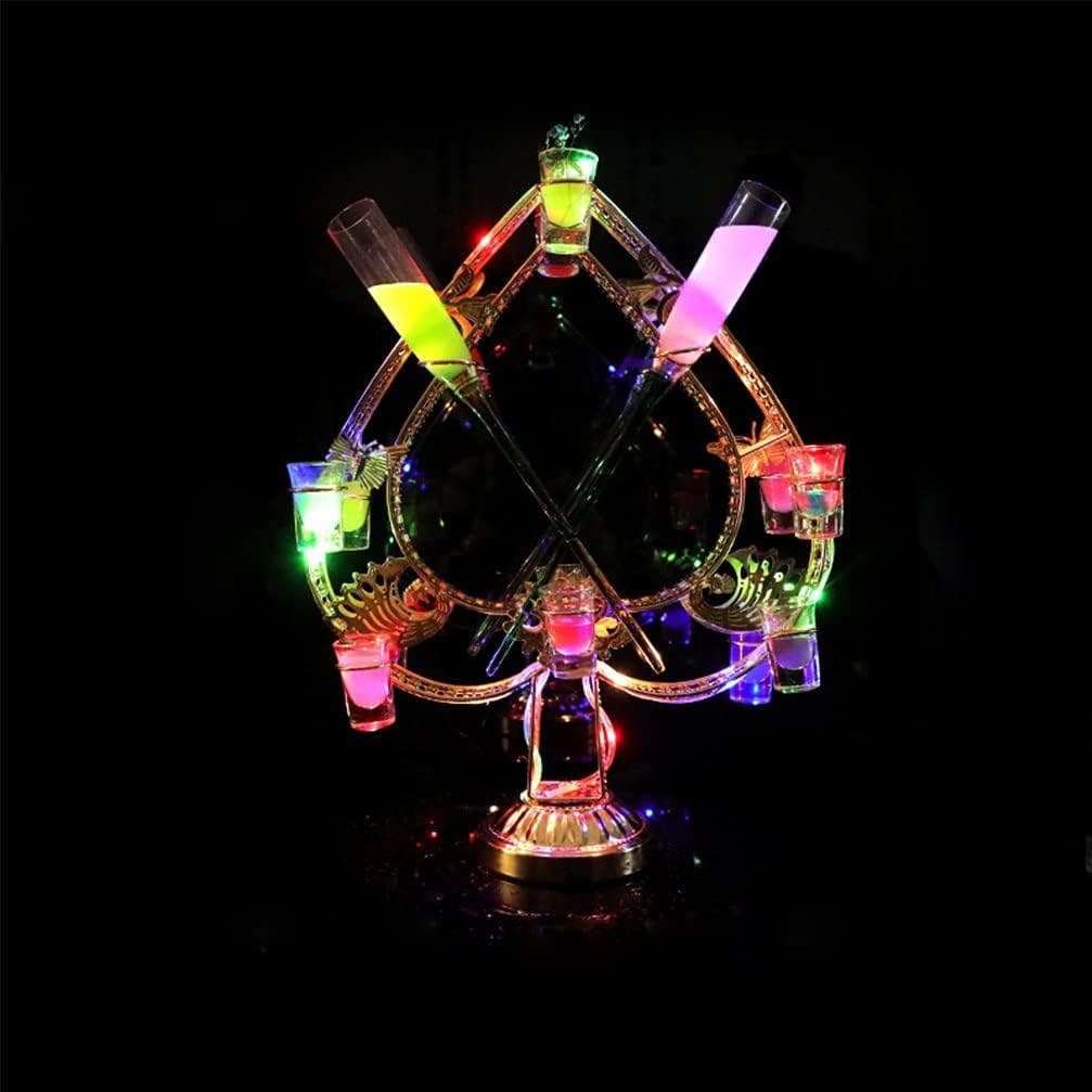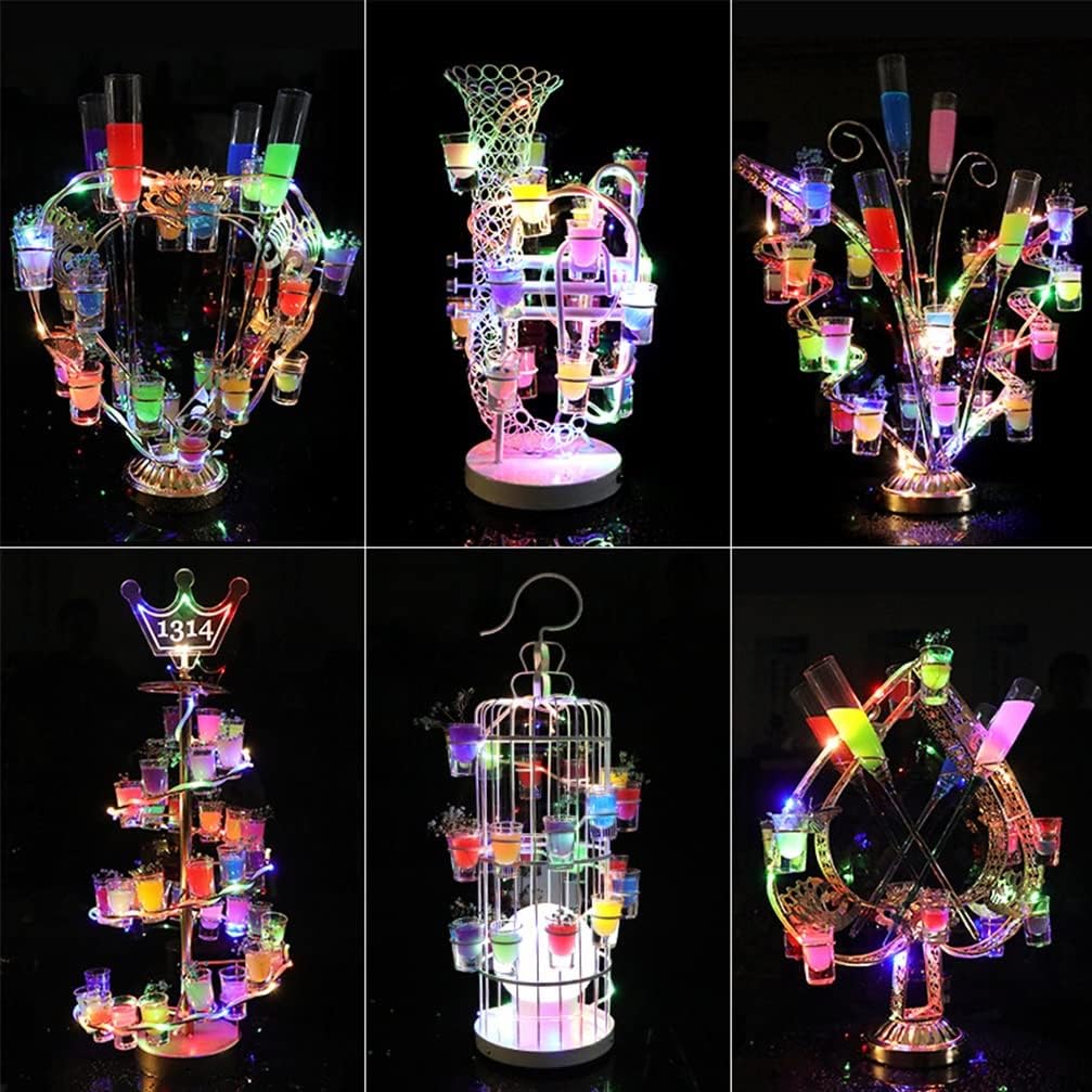 Material: MetalShape: As the picture show ,we have many style to choose Charge time: 3 -4 hoursWorking time: 8-15 hoursRecharge Rechargeable design ,great for wedding party bar supplies.Package included: The Wine Bottle Holder, included the wine cupReminder: Please use the original charger to charge! Avoid damage to the fixture.