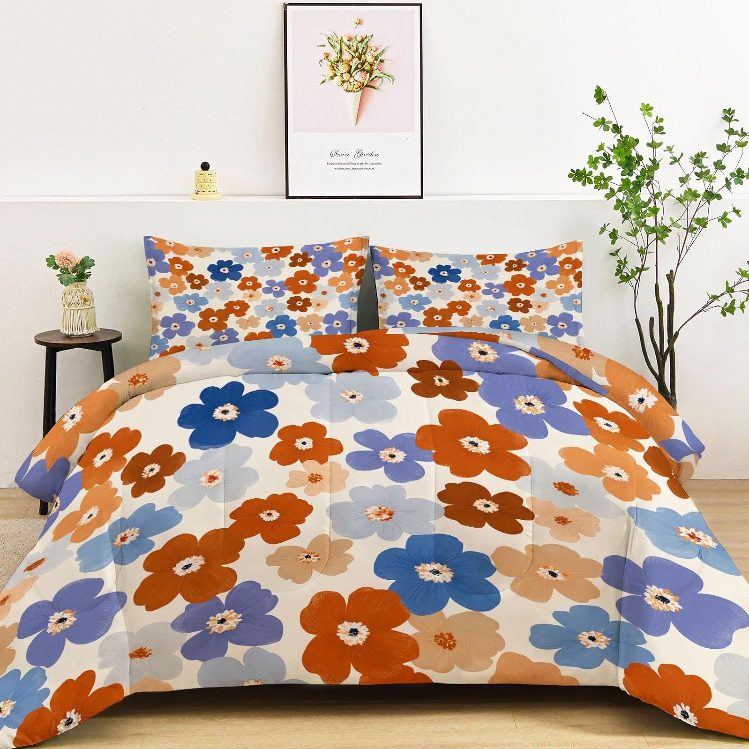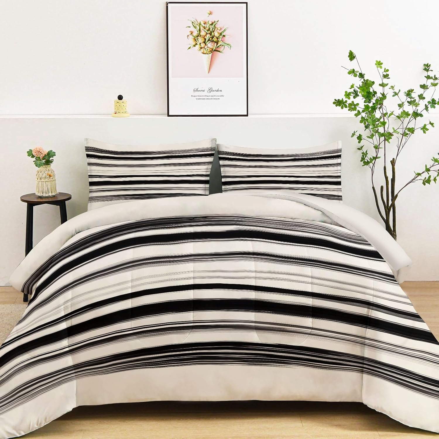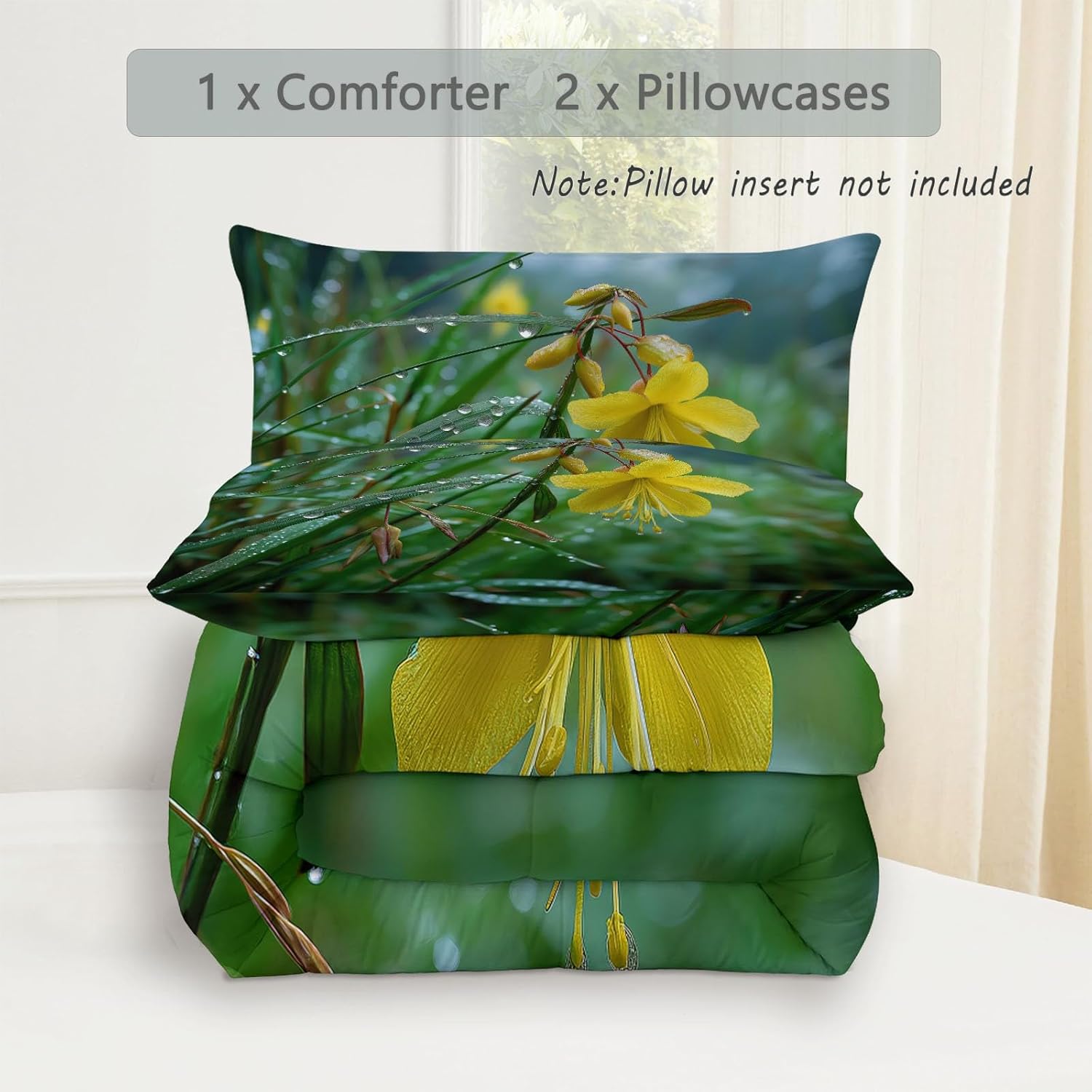 Transform Your Bedroom with Style and Comfort Key Features: Excellent Craftsmanship Hidden stitching design secures the filling in place to avoid shifting and clumping while presenting a original look of the comforter. Made of light brushed & pre-washed microfiber, with high tensile strength, comforter sets are durable for longtime use. Soft and Cozy Our comforter features breathable microfiber filling, offering lightweight fluffiness and exceptional comfort. The skin-friendly fabric provides softness, while the hydrophilic treatment ensures quick moisture absorption, fast drying, and temperature regulation for a cooler, drier, and warmer sleep experience. All-Season Comfort This comfortable not too thick, with a luxuriously soft and lightweight fill, it is truly a season bedding collection, it will keep you warm but not make you sweat. Enjoy the airy feel of the comforter in warmer weather or snuggle into its warmth when temperatures drop. Easy to Care Machine wash on a delicate cycle with cold water. Sun-dry or tumble dry on low heat. Do not bleach or iron. Due to vacuum packaging, the comforter may arrive compressed. Simply expose it to air and gently tap it, and it will fluff up nicely after a few hours. Perfect for Any Room This bedding set is the ideal addition to any bedroom. Whether you’re looking for a new comforter for your guest room, a gift for a loved one, or simply want to update your own space, this set is designed for comfort and style-making it a must-have for every home. Size 1 x Queen Comforter: 90" x 90" 2 x Pillow Sham: 20" x 26" After-Sales Service Your satisfaction is our priority! For any questions or concerns, our customer service team is available to assist you promptly.
