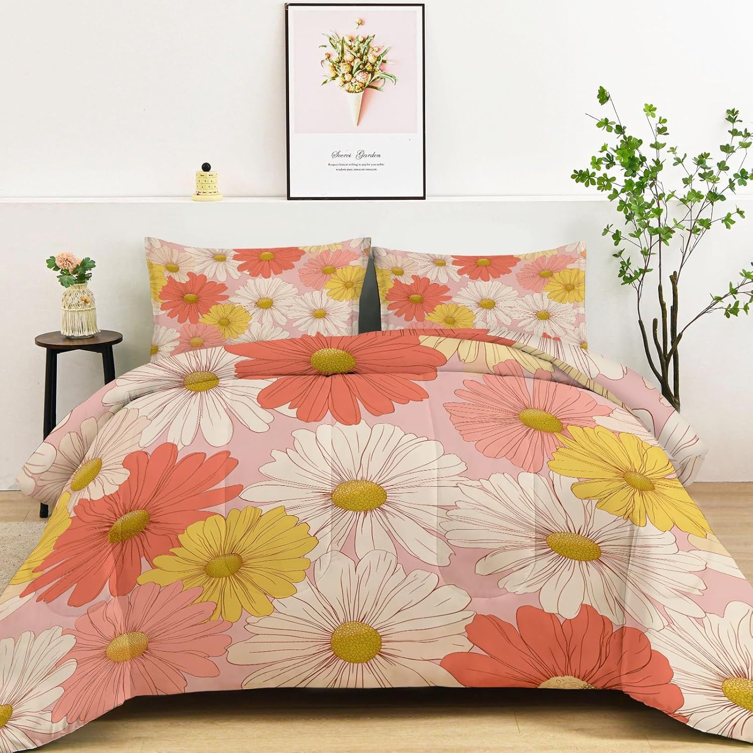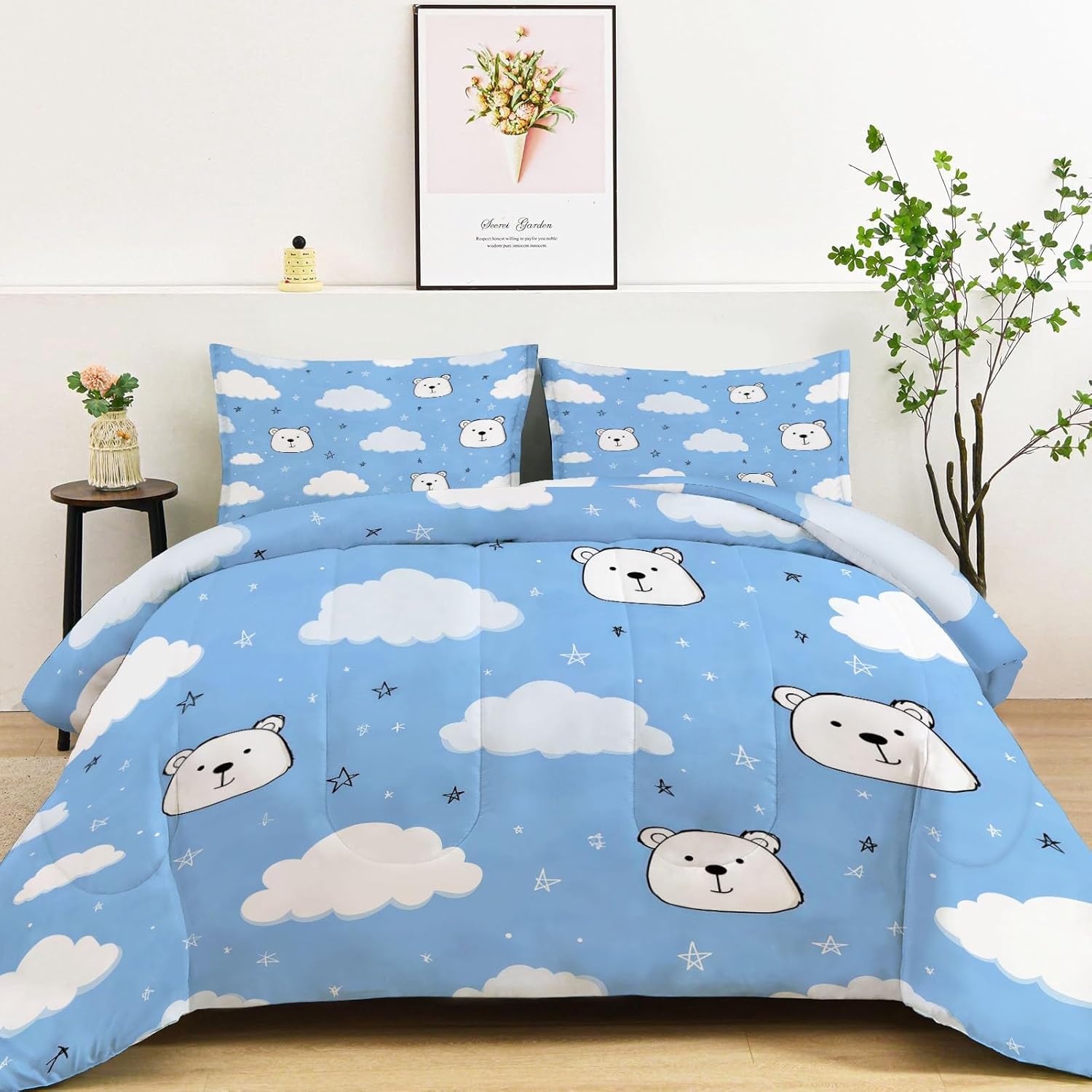 Transform Your Bedroom with Style and Comfort Key Features: Excellent Craftsmanship Hidden stitching design secures the filling in place to avoid shifting and clumping while presenting a original look of the comforter. Made of light brushed & pre-washed microfiber, with high tensile strength, comforter sets are durable for longtime use. Soft and Cozy Our comforter features breathable microfiber filling, offering lightweight fluffiness and exceptional comfort. The skin-friendly fabric provides softness, while the hydrophilic treatment ensures quick moisture absorption, fast drying, and temperature regulation for a cooler, drier, and warmer sleep experience. All-Season Comfort This comfortable not too thick, with a luxuriously soft and lightweight fill, it is truly a season bedding collection, it will keep you warm but not make you sweat. Enjoy the airy feel of the comforter in warmer weather or snuggle into its warmth when temperatures drop. Easy to Care Machine wash on a delicate cycle with cold water. Sun-dry or tumble dry on low heat. Do not bleach or iron. Due to vacuum packaging, the comforter may arrive compressed. Simply expose it to air and gently tap it, and it will fluff up nicely after a few hours. Perfect for Any Room This bedding set is the ideal addition to any bedroom. Whether you’re looking for a new comforter for your guest room, a gift for a loved one, or simply want to update your own space, this set is designed for comfort and style-making it a must-have for every home. Size 1 x Twim Comforter: 68" x 90" 2 x Pillow Sham: 20" x 26" After-Sales Service Your satisfaction is our priority! For any questions or concerns, our customer service team is available to assist you promptly.