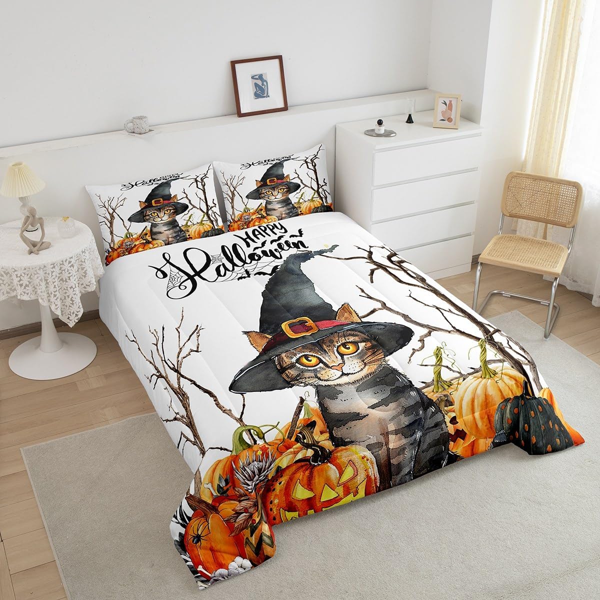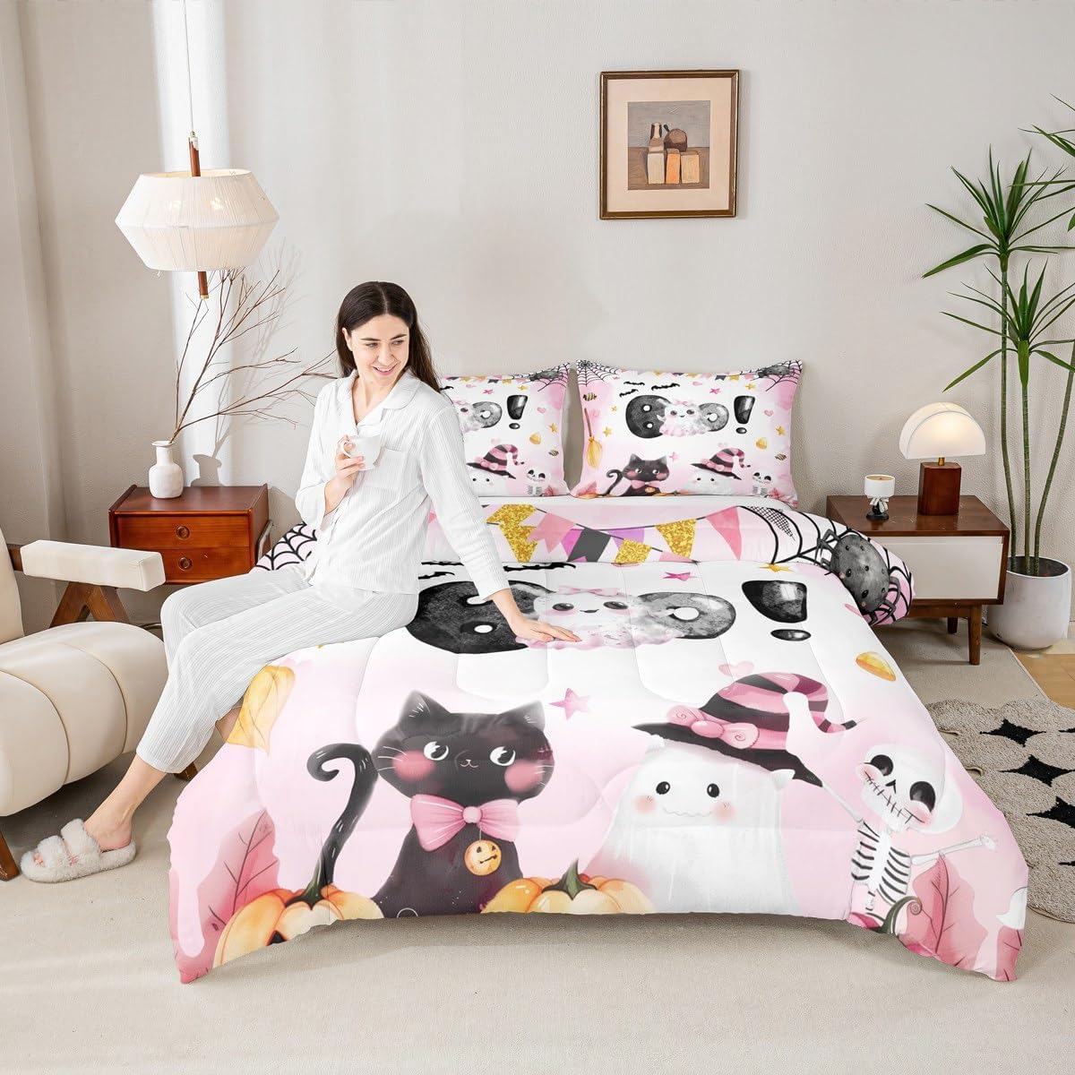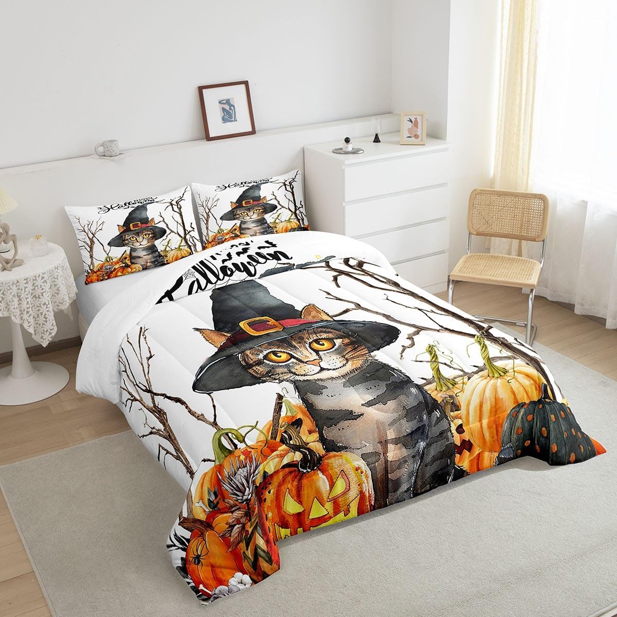 Package Include: Comforter and Pillowcase. Makeover your bedrooms every season with our Comforter sets. Perfect item for your room, girls boys youth room, master bedroom. Size Information: Twin size down comforter 68"W x 90"L and 1 pillow case 30"W x 20"L. 2pcs with 1 Bed Comforter and 1 Pillowcases in A Bag Full size down comforter 79"W x 90"L and 2 pillow cases 30"W x 20"L. 3pcs with 1 Bed Comforter and 2 Pillowcases in A Bag Queen size down comforter 90"W x 90"L and 2 pillow cases 30"W x 20"L. 3pcs with 1 Bed Comforter and 2 Pillowcases in A Bag King size down comforter 104"W x 90"L and 2 pillow cases 36"W x 20"L. 3pcs with 1 Bed Comforter and 2 Pillowcases in A Bag Useful and practical A luxurious product for homes, dorm rooms, hotels, guest rooms. Practical to use for being polyester, feels like cotton which is Super Soft and Breathable. No chemicals used, No dye substance harming the health of you or your family. Unique design: Vivid Colors won't fade thanks to new 3D digital printing methods. These unique designs match well with various color palettes of your rugs, curtains, headboard, furniture, and all other decor accessories. Personalized: As manufacturers of digital printed home textiles, we follow current trends and bring you the latest home fashion. More Decor: Search our store to get more christmas theme, new year theme, autumn fall theme, any holiday theme, modern abstract, farmhouse rustic theme, simple pattern, garden flowers etc. home decoration. Warm Tips: 1. Please allow 1-3cm error due to manual measurement. 2. Actual color may vary from the color on your screen due to monitor color restrictions.