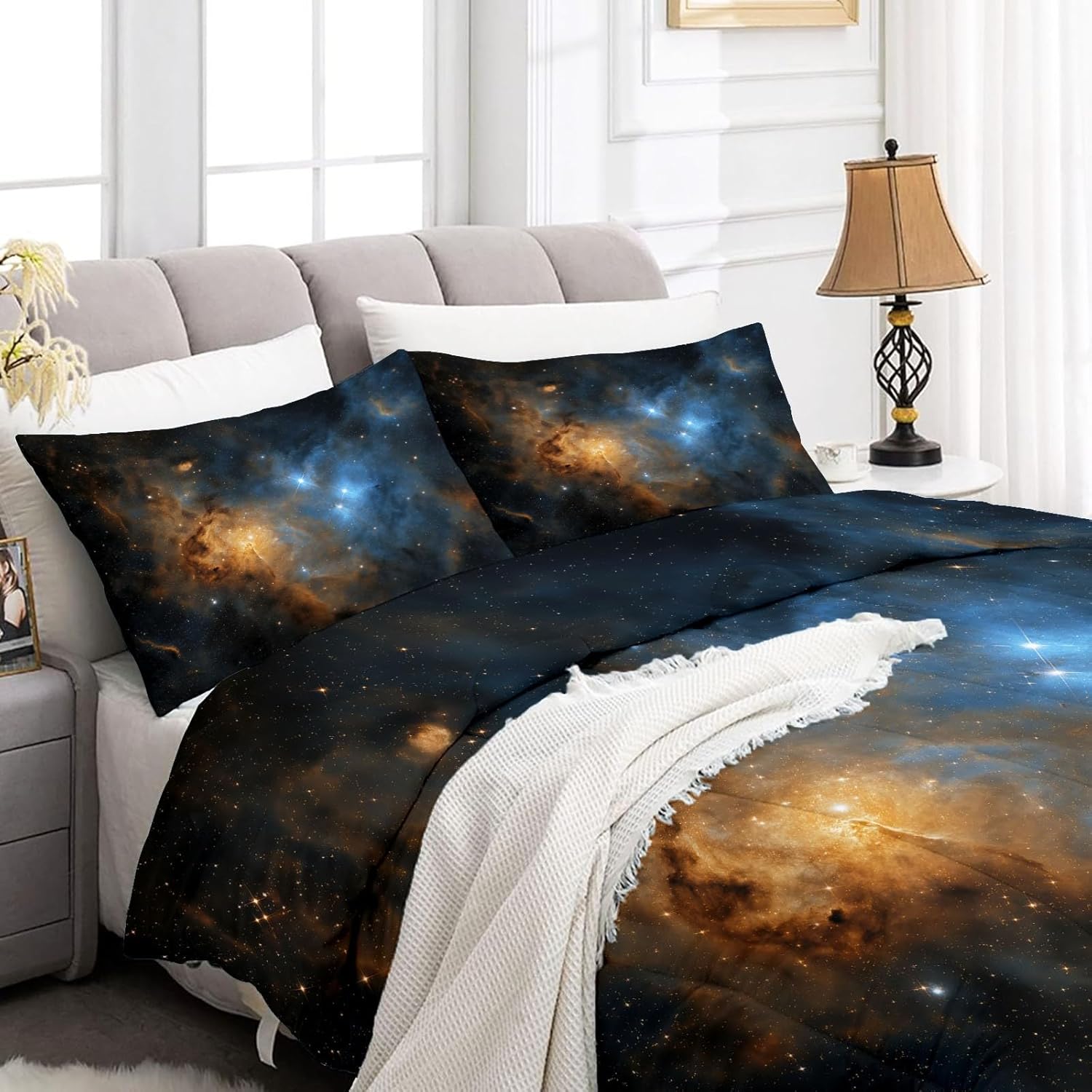 Upgrade Your Bedroom with a Cozy, Stylish Comforter Set Discover effortless comfort and hotel-quality warmth with this all-in-one comforter set. Designed for modern living, this down alternative comforter delivers breathable, lightweight insulation without the need for a duvet cover—perfect for year-round use. Premium Fabric & Down Alternative Filling ● Soft, breathable washed cotton outer layer for natural, skin-friendly comfort ● Fluffy down alternative filling provides lightweight warmth and cosy insulation ● Hypoallergenic comforter, family-friendly and suitable for everyday use Soft, Fluffy & Reversible Hotel-Quality Design ● Elegant curved stitching keeps the filling evenly distributed and prevents shifting or clumping ● Soft comforter construction offers breathable warmth without overheating ● Reversible printed design allows you to refresh your bedroom style in seconds All-Season Versatility for Everyday Living ● Designed as an all season comforter—lightweight yet warm for year-round comfort ● Ideal for bedrooms, guest rooms, student accommodation and family homes ● Can be used as a coverless comforter or as a comforter insert with a duvet cover if preferred Easy Care & Machine Washable Comforter ● Fully machine washable on a gentle cycle for easy maintenance ● Tumble dry on low and remove promptly to preserve fluffiness and loft ● No ironing, dry cleaning or frequent cover changes required—perfect for low-maintenance households Available Comforter Set Sizes ● Twin XL Comforter Set: 68"x90" (173x229 cm)+ 1 pillowcase ● Queen Comforter Set: 90"x90" (229x229 cm)+ 2 pillowcases ● King Comforter Set: 104"x90" (264x229 cm)+ 2 pillowcases Reliable Customer Support ● Friendly and responsive customer service within 24 hours ● Support available for any product questions or concerns