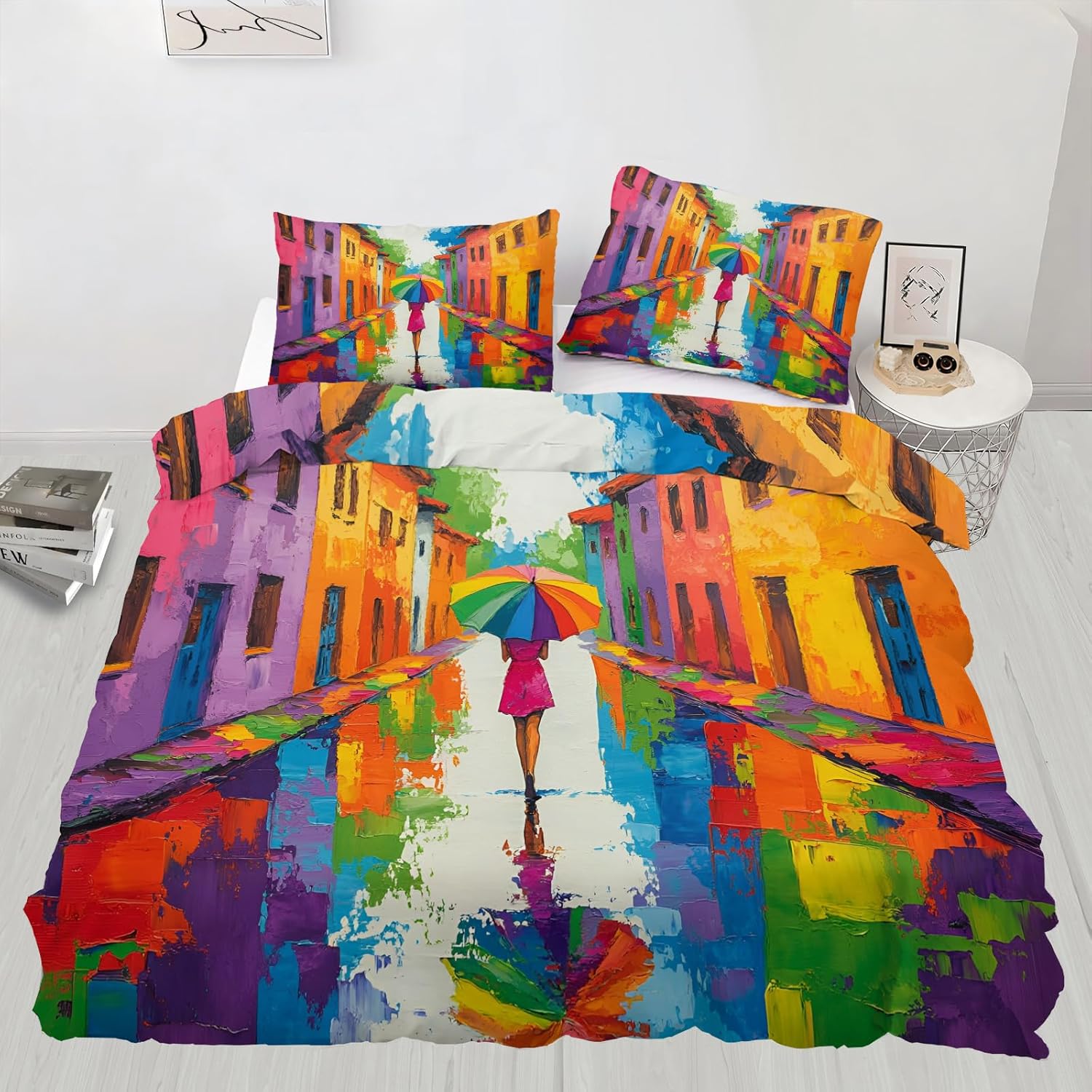 Express Your Personality Through Bold PrintsYour bedroom should reflect you — this printed duvet cover set adds personality and charm with a wide selection of artistic patterns. Whether your style is calm and minimal or vibrant and playful, there's a design to complement any mood or interior.Soft, Breathable, and Year-Round ComfortableCrafted from premium microfiber, this duvet cover feels smooth and skin-friendly. Lightweight yet cozy, it's breathable for summer and insulating for cooler nights — perfect for all-season use.Fade-Resistant Colors that LastPrinted using advanced reactive dyeing, our patterns stay rich and vibrant after repeated washes. No fading, no bleeding — just long-lasting style that holds up over time.Thoughtful Details for Effortless UseHidden zipper closure keeps the look clean and makes insert changes quick.Four interior corner ties prevent the duvet from bunching or shifting at night.Durable stitching ensures long-term reliability and washability.Complete Set, Effortless MakeoverEach set includes:1 Duvet Cover(Twin size measures 68 by 86-inch)2 Matching Pillowcases(Pillow Cases 20 by 26-inch)NOTE: Comforter and Sheet Not IncludedPerfect for bedrooms, dorms, guest rooms, or as a gift — it’s a quick, stylish upgrade for any bed.Comfort Meets CreativityMake a statement with your bedding. Whether decorating your space or gifting someone special, this printed duvet cover set blends comfort, quality, and personality — all in one.